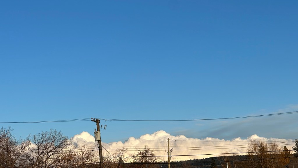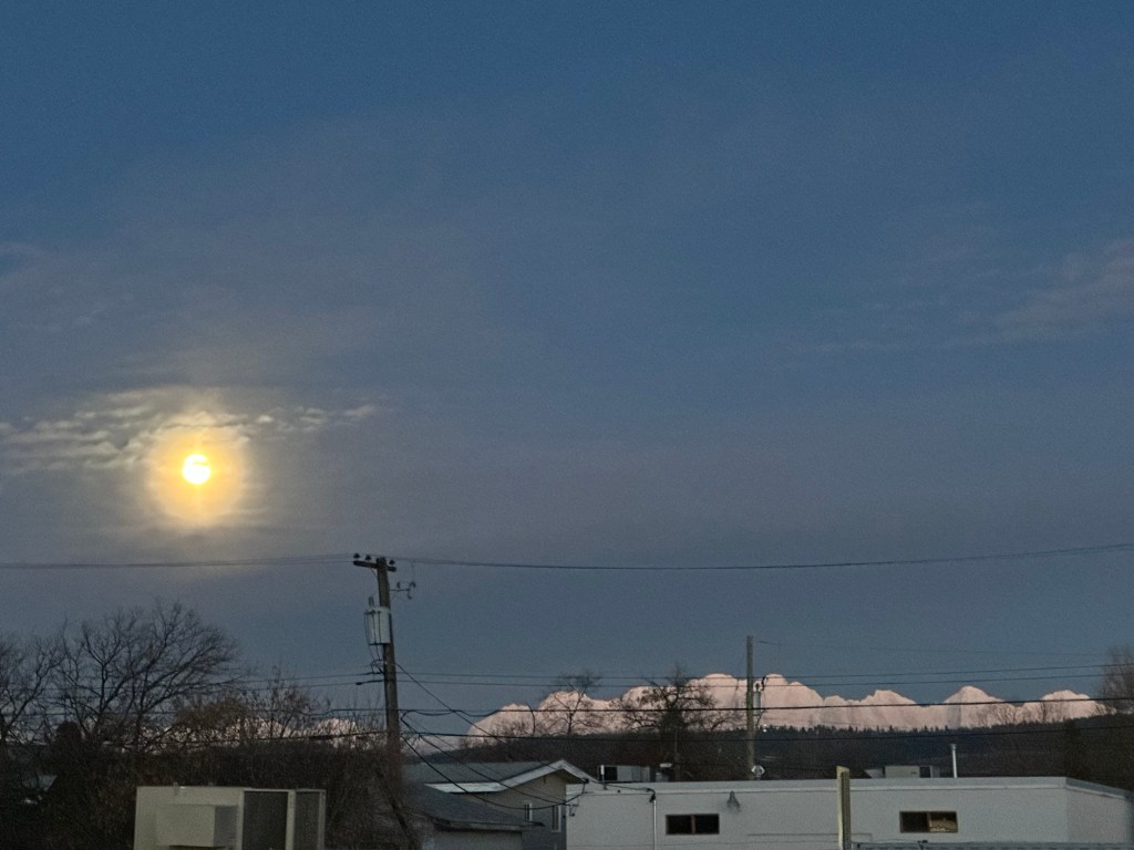 The sky was amazing today with the clouds following the mountains and then the full moon
