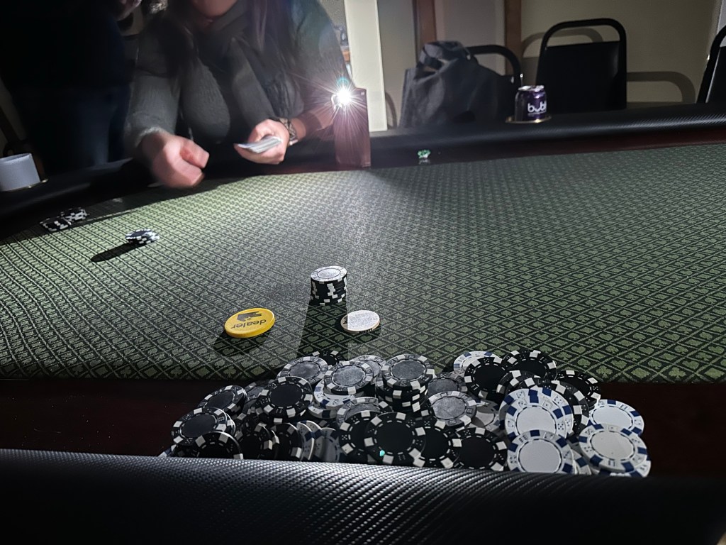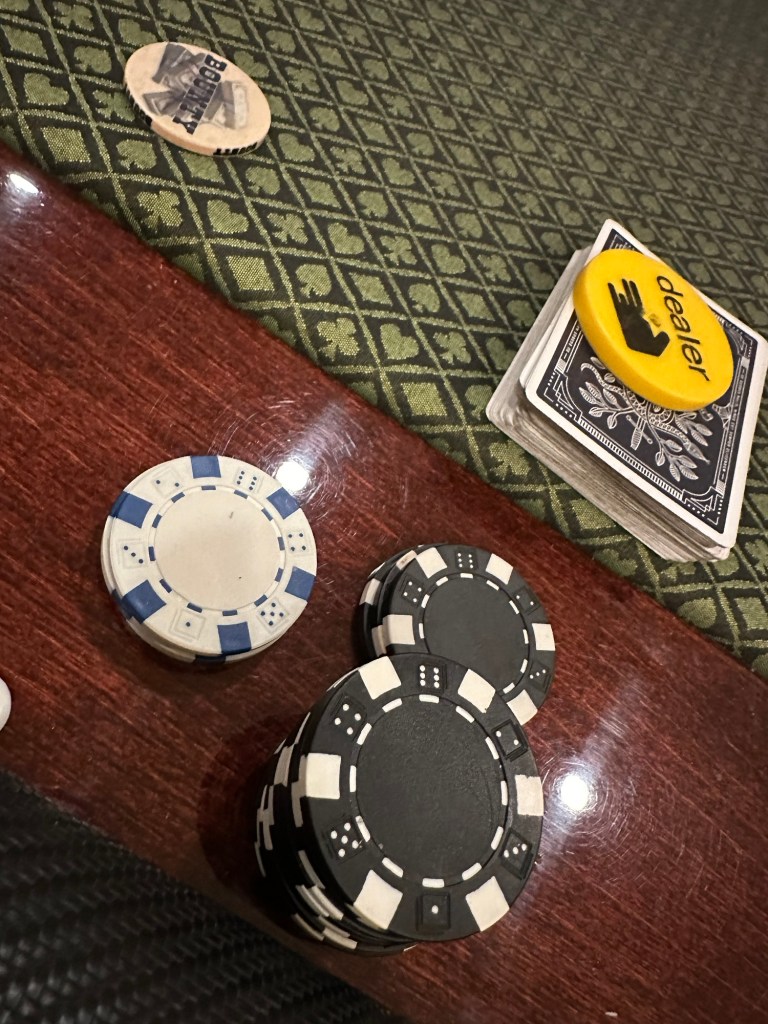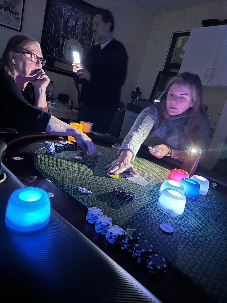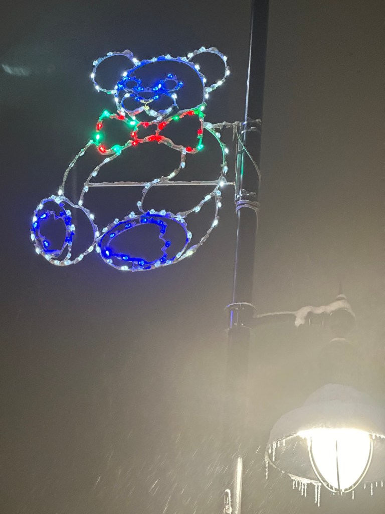 Shovelling three times today was not on my schedule. Work was good, met Rae at her place and we walked downtown for the annual late night shopping. It was lovely to wander in and out of stores who had snacks and bevies for us as well as deals. Roger picked us up to bring me back to my car in time to drop my stuff at home and head to Galen’s for poker night. I came out $75 ahead after taking 2nd place. Kathy and I were just going head to head when the power went out. I drove around for a bit after and there were odd parts of town in the dark. Even a block from me is dark but home is fine. It sure is beautiful but what a dump and it is still coming down heavy.