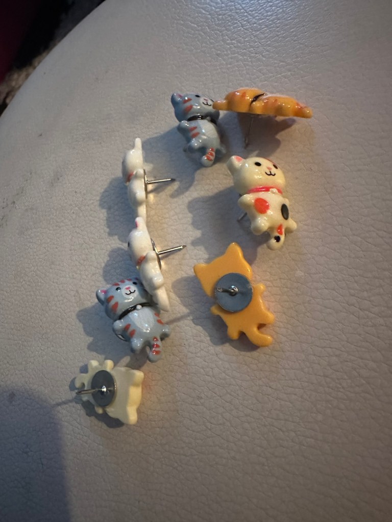 Day two from Rae were some cute cat thumbtacks. Last night I framed my art from the Galapagos finally and got it hung up in my office at days end.