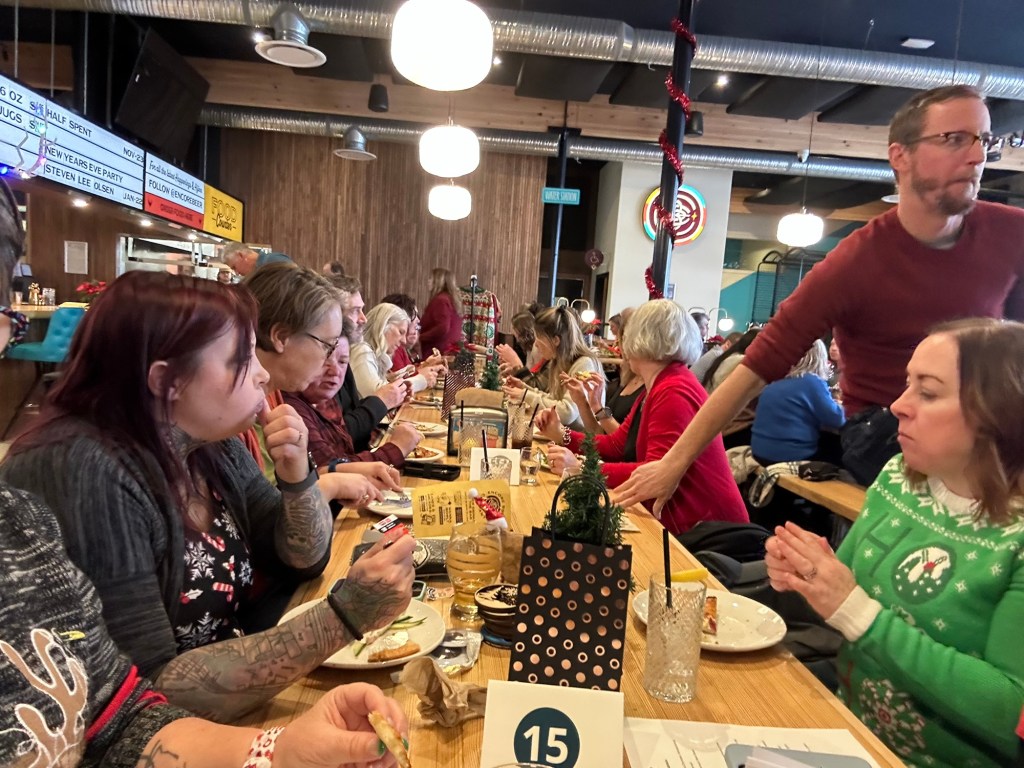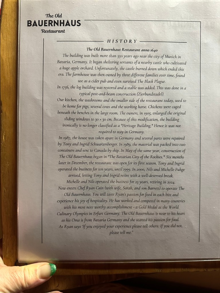 CFEK invited me and a guest to their Christmas party at The Old Bauernhaus. Tracey joined me, and we picked up Brian, one of our janitors on the way. The meal was the Bavarian Feast, an ‘I lost count’ round of amazing food. The new GM Kerstin and her husband Dave, loans manager, Keri, and Community Manager, Marie with her boyfriend, Chris, joined our table and the conversation flowed easily. It was a great night!