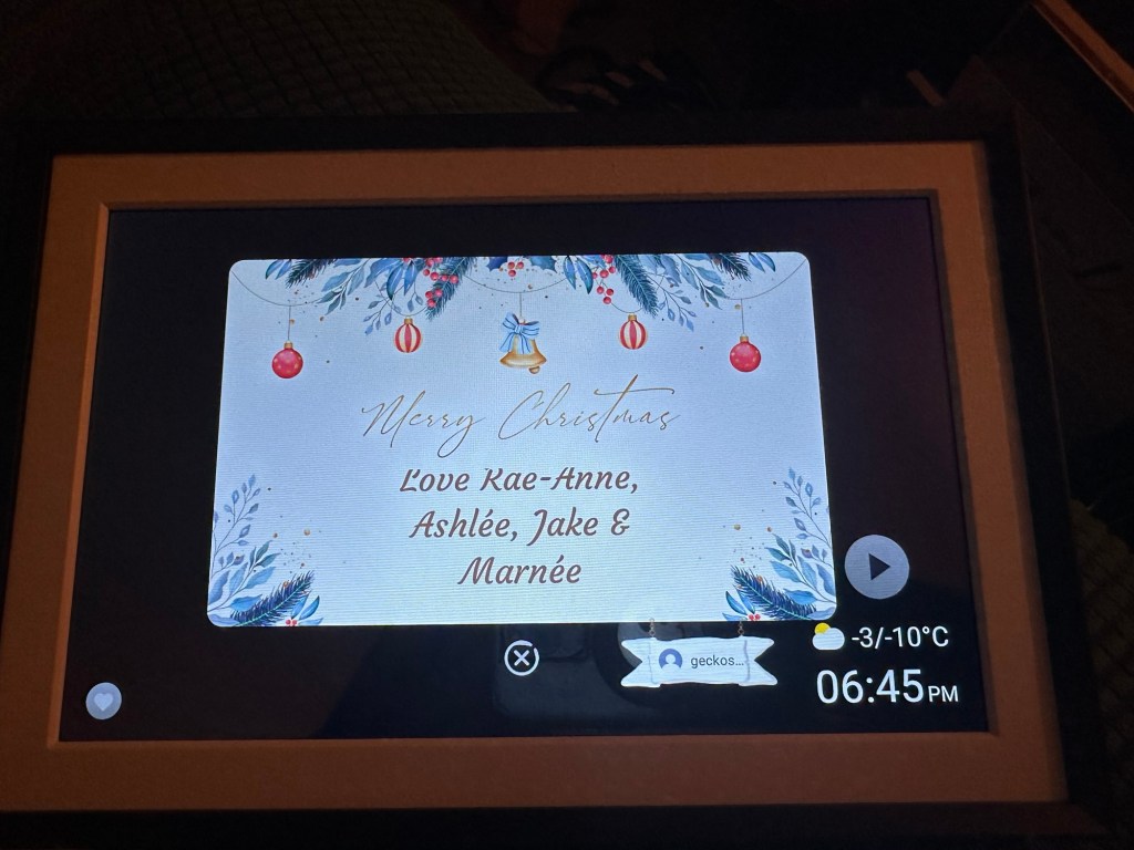 Oh, I also received the digital photo frame that my three kids and I bought for my mom and use the app to upload photos and all of them have access to that too, which is super cool and she will love it