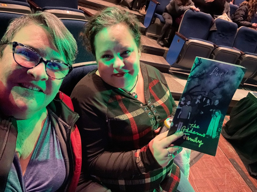Today was very challenging at work. I got it all done though and Kerstin dropped me back home in time to have taco salad with Ashlée before we headed to Key City Theatre to see the show I had bought her tickets for for Christmas. Fortunately, Eve was able to switch my tickets from centre centre to front row just off the side of the thrust so that I could have my scooter there and keep my foot up. It was very strange to see the show from the front row, but wow, it was remarkably done and when you were that close, it is very easy to pick things apart, but the set, the make up, the costumes, the singing, dancing and acting was all brilliant . The biggest surprises to me were Patrick Baronowski (sp) as Fester and Caitlin McCaughey as Alice. Little Ms Fisk also did well as Pugsley. The chorus was so good with some killer voices. And of course, Matt Van Boeyen was a hoot as Gomez.