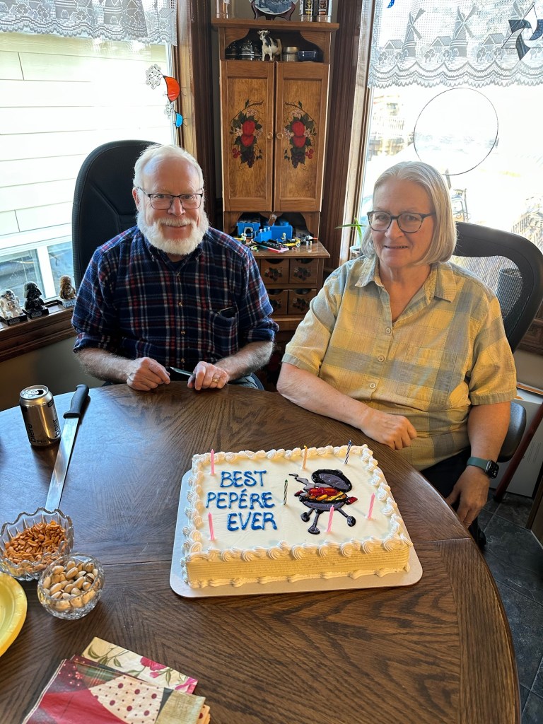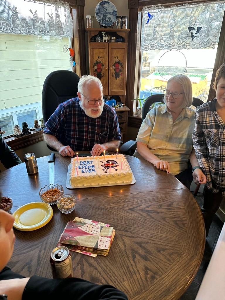 I was glad to join the family at Bill and Deanne’s for ice cream cake to celebrate Bills birthday that was on Friday. I walked up, er, rolled up the black with the entourage of Niko, Will and Sawyer.