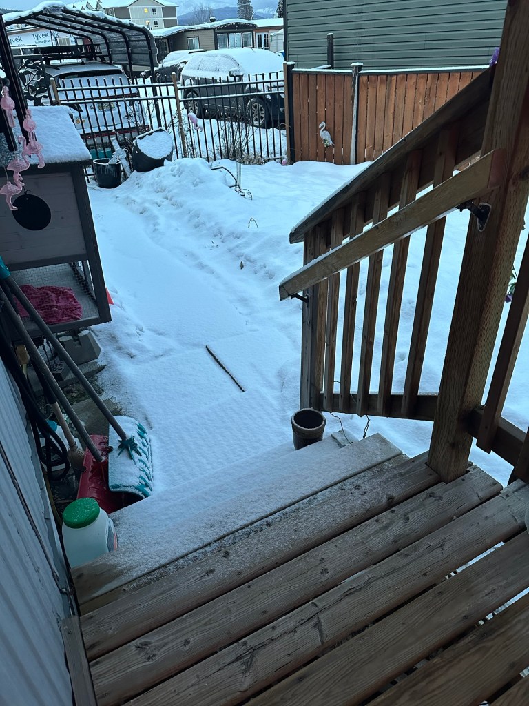 I was grateful to Gene who came and shovelled and ice melted my walkway and out to the road as we had a bit of snow today and he also moved my coffee table for me so that now I have a nice turnaround area more convenient then previous