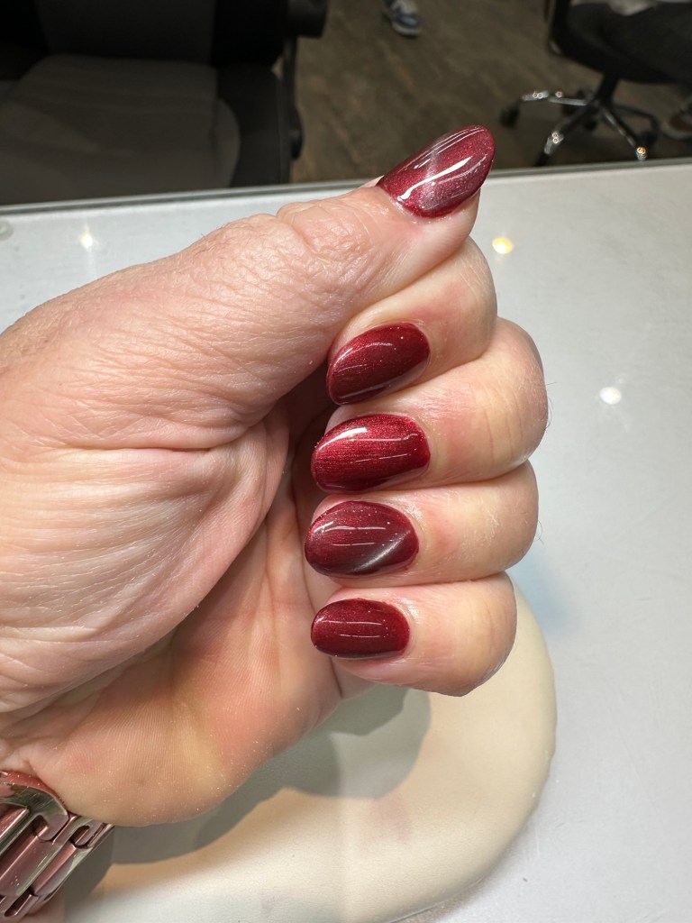 Rae picked me up and we went to Desirable nails where she had a pedicure as thanks for driving me so much while I got my nails redone. We had booked it before I heard the news. I chose a colour I knew Jackie would love.