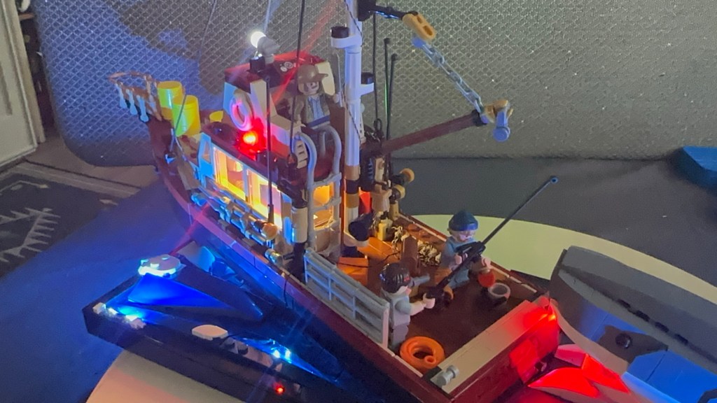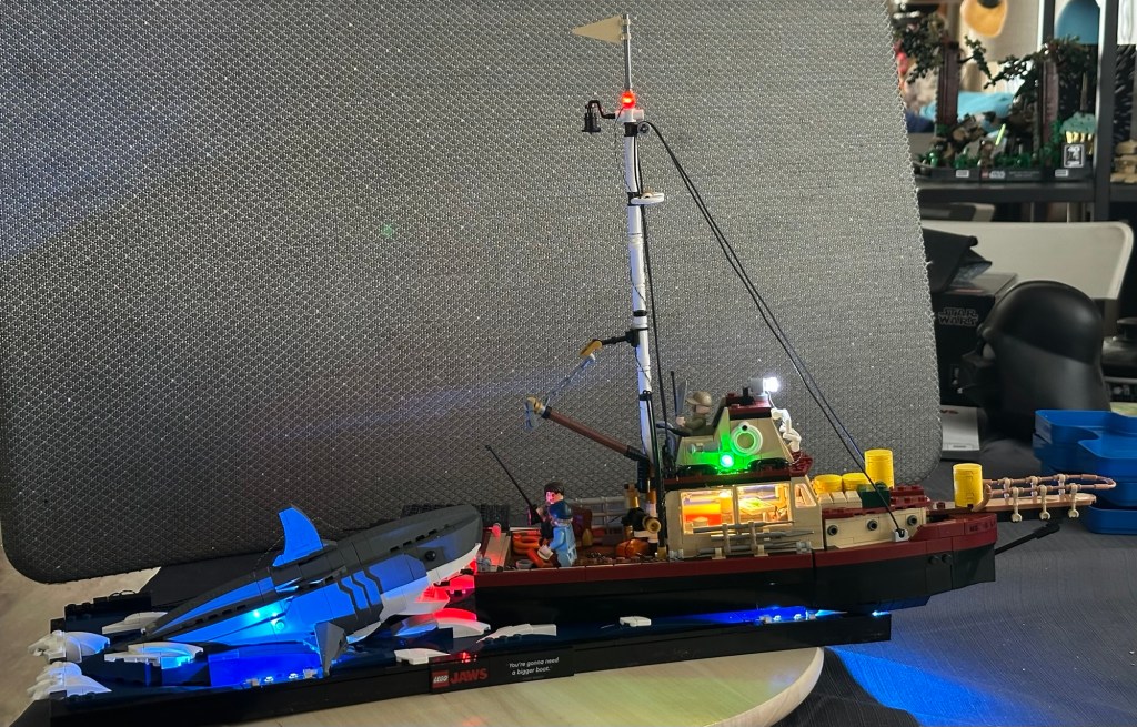 It was ABC zoom morning and for the first time in a very long time we were all there. It was nice to catch up and so good to see Lynda doing so well after her brain surgery. I listened and worked on adding the lights to my Jaws Lego. It turned out really well!