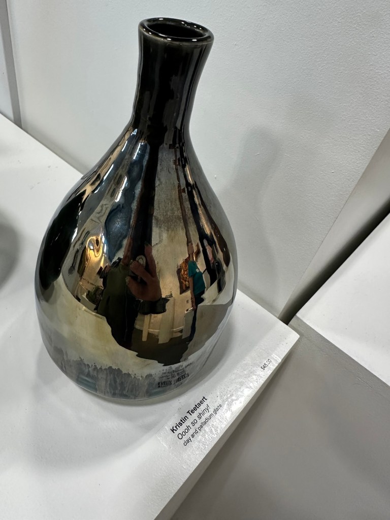 I had a good sleep and woke up with no intention of going anywhere. I made coffee and sat in my chair and started watching my shows did a few little chores and relaxed again and then I was scrolling Facebook when I saw a post by Kristen reminding me that I had wanted to go to the Opening at the gallery today it was already an hour well into it and so I got myself ready and headed there. I am so glad I did. I know what it feels like when people you know come out and support the things that you do and I also know what it feels like when they don’t so to be able to go to a show where I saw the artwork of two of my friends and to see them in person and to have wonderful conversations with artists and creators and watch demonstrations of felt art and wet felt forming and other things that I can’t even completely explain, but I took some cool pictures and it was soul filling.
