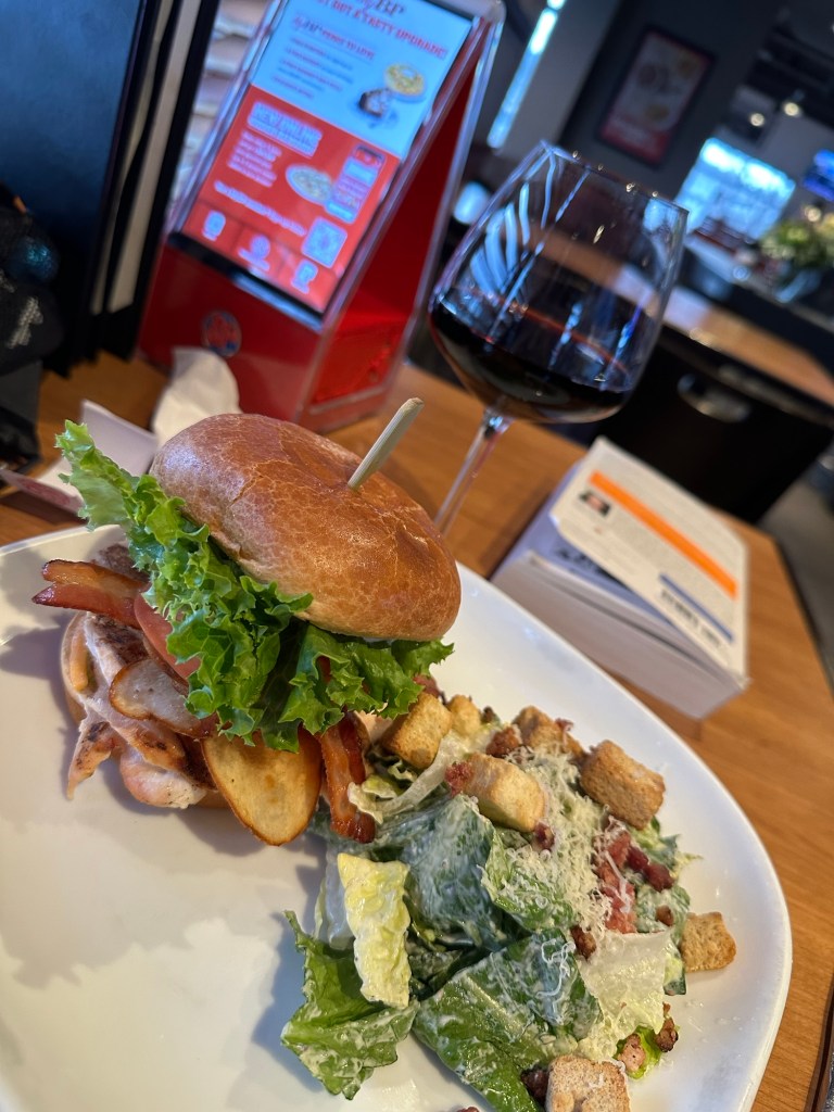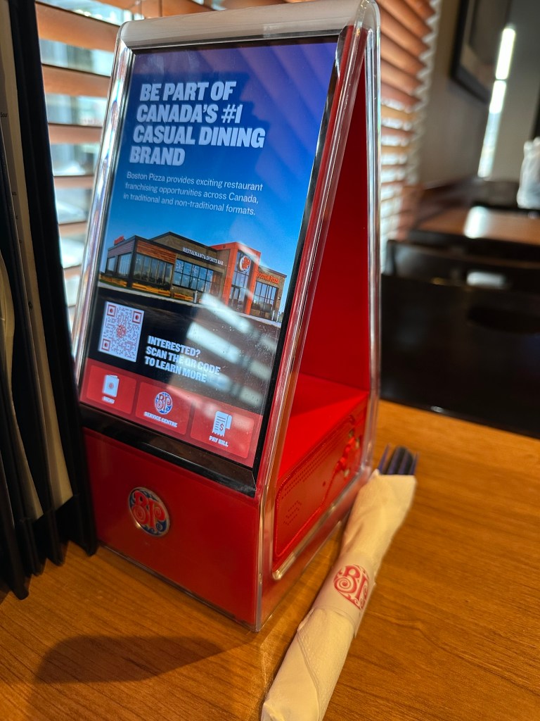 Long day of data entry and reconciling. By 7:30 I was starving so I headed to Boston Pizza for Burger month. I was literally shaking by the time I got my Perogy Chicken Burger and Caesar salad. Skimmerhorn was on special so I got my whole delicious meal for 31.57 including tip. The food was good, the service was good and I got another chapter of my book read. They have cool new charger stations.