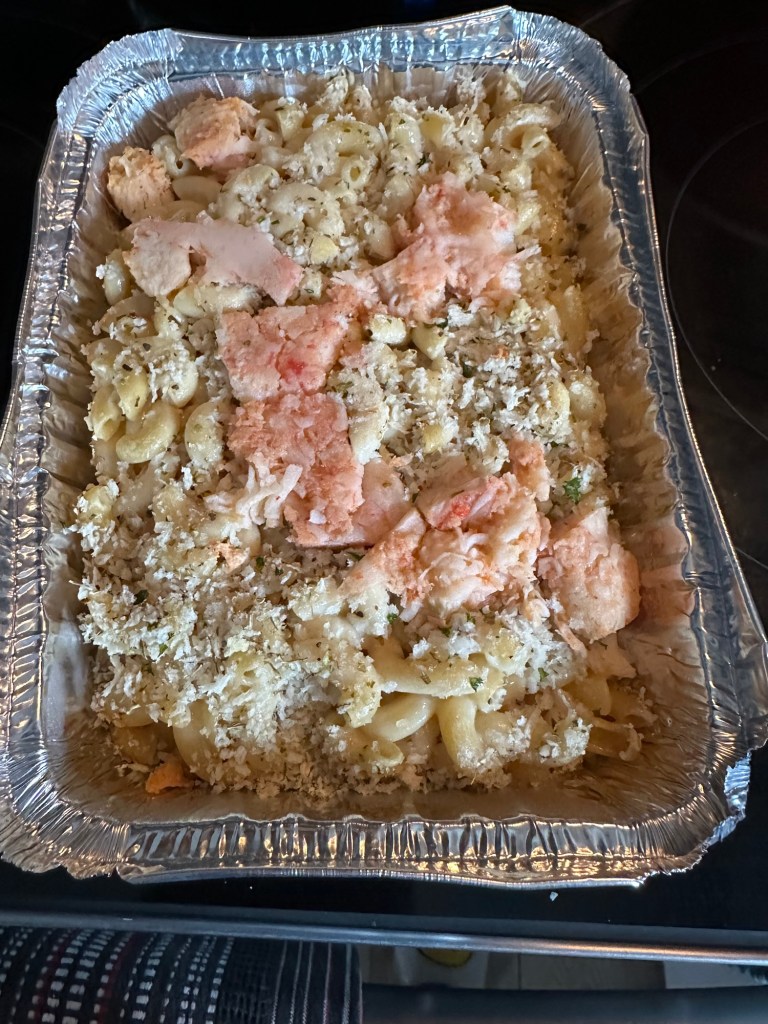 For lunch, I heated up the lobster mac & cheese that I bought frozen at Heid-out yesterday and will have more for dinner. I’m sure.