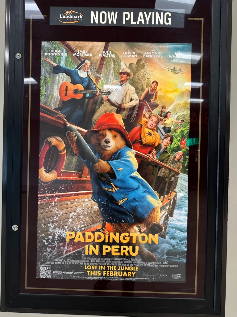 I tried to find a grandson to go see Paddington in Peru with me but they were all involved in a big DnD campaign so I threw on my jacket that I bought at Machu Picchu and headed to the 2;15 show. I enjoyed it very much and had a good laugh when the father asked their guide if he got his tattoo on a drunken night in Cusco. That is where I got my Peru tattoo! I was glad that I brought my loops as there was a large group of kids for a birthday a couple rows back. They were very well behaved.