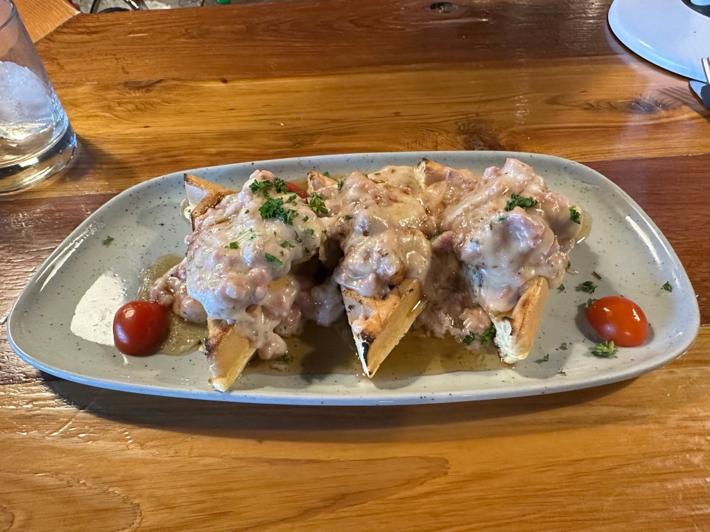 Hung out at the bar with Michelle and Teanna being served by Robbie. What a fun evening with Chicken and Waggles recommendation from chef Michelle
