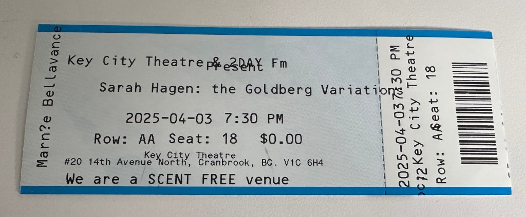 After the lunch, I stopped at Key City to pick up their Gala gift and pick up my ticket to the show this evening. That was surprise number two. In the morning I got an invite via messenger from Sarah Hagen to be her guest tonight. I confess not being well-versed on Johann Sebastian Bach nor the Goldberg variations, which she would be playing, but it was such a beautiful invitation that I was very happy to accept.