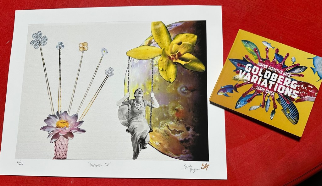 In the lobby before the show, she had a display of a print for each variation art that she had created to express that variation. I found them interesting and chaotic and colourful and confusing and then I saw variation 30 the last of them and felt joy to the world. I purchased it immediately with a red dot so that people could experience it. After the show, Sarah graciously signed my CD and initialled beside her signature on the print which was funny because she seemed hesitant and then commented that it was beautiful done in the gold sharpie.