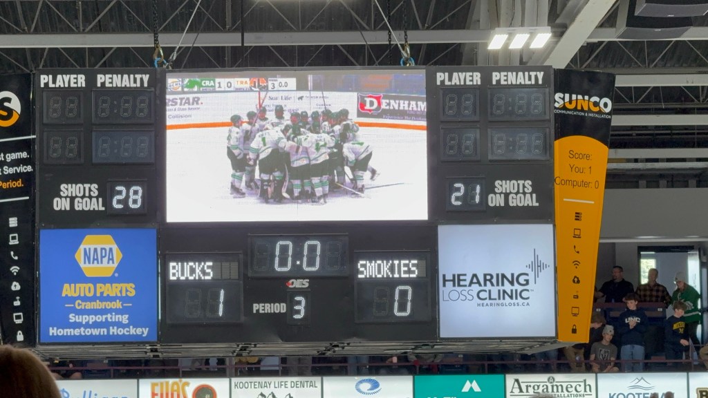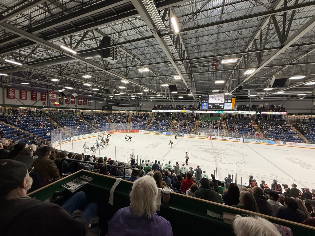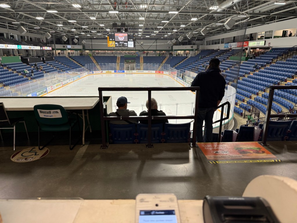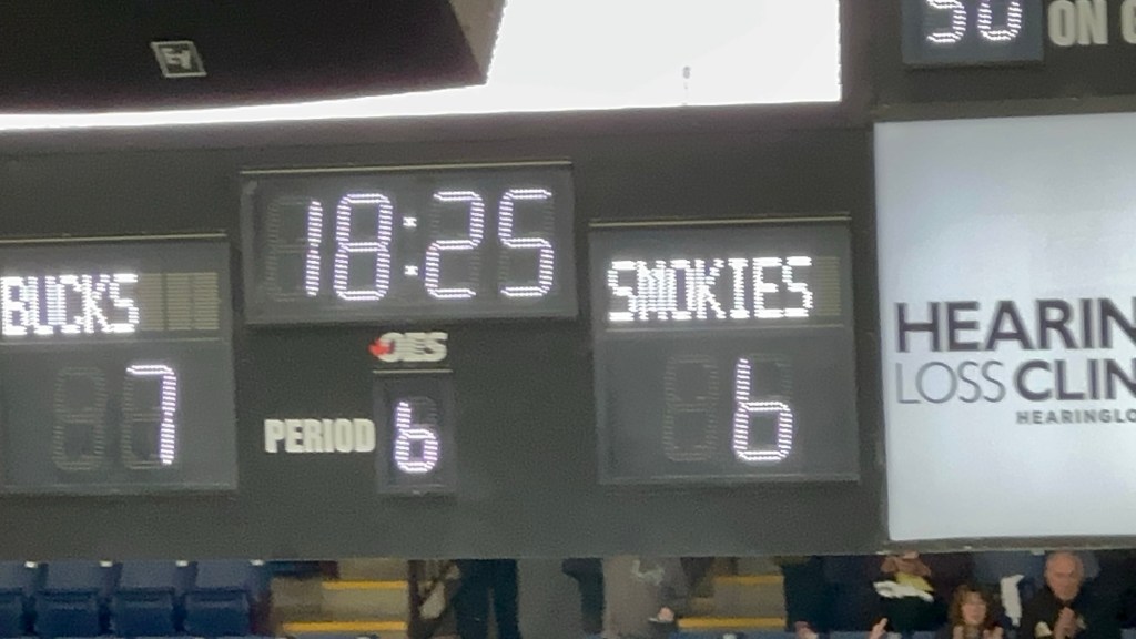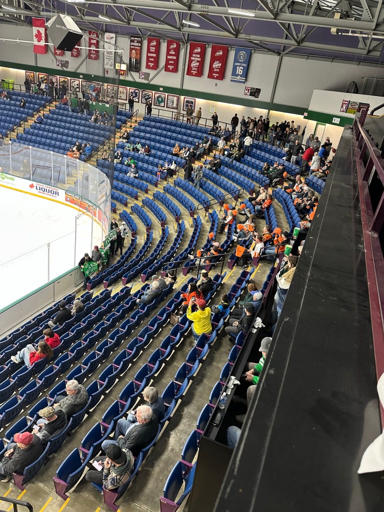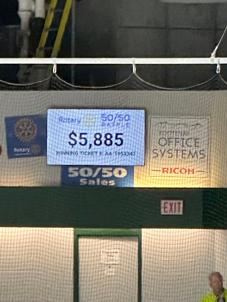 At one point, I took a quick picture and sent it to my cousin Jeanne to confirm that one of these young men was her grandson, Kye. Imagine his surprise when I called out hey Kye, do you guys mind moving so I can see the game too? I quickly told him I was his dad‘s cousin, and there was a chuckle all around. They were very polite and moved out of the way immediately. As it happened, I got to see very little of the game because the 50-50 pot kept getting higher and higher and the lineup was getting longer and longer and from about half an hour into the game until some minutes into the third period I was constantly selling tickets. In the end it got up to almost 12 grand and nobody claimed it!