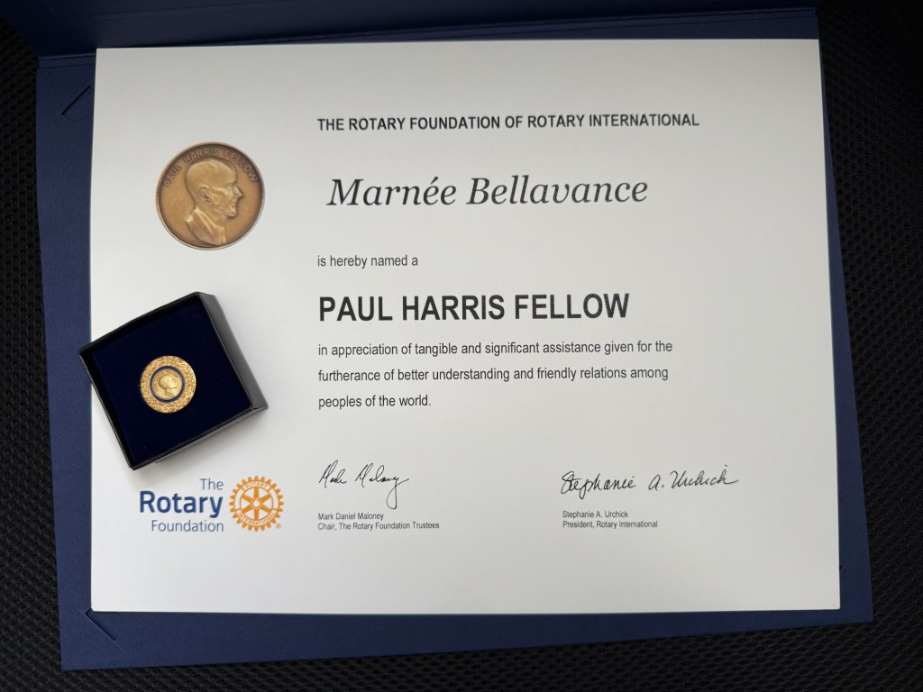 I was surprised at Rotary lunch by being called up and presented as a Paul Harris Fellow. Paul Harris was the founder of Rotary and I was able to give $1000 US in the Rotary fiscal year which granted me a beautiful award. I didn’t realize it was a big deal until people started congratulating me after. It’s really just a blessing to me to be able to give to something that is making a difference in my community and in the world. I should wear my pin with pride.