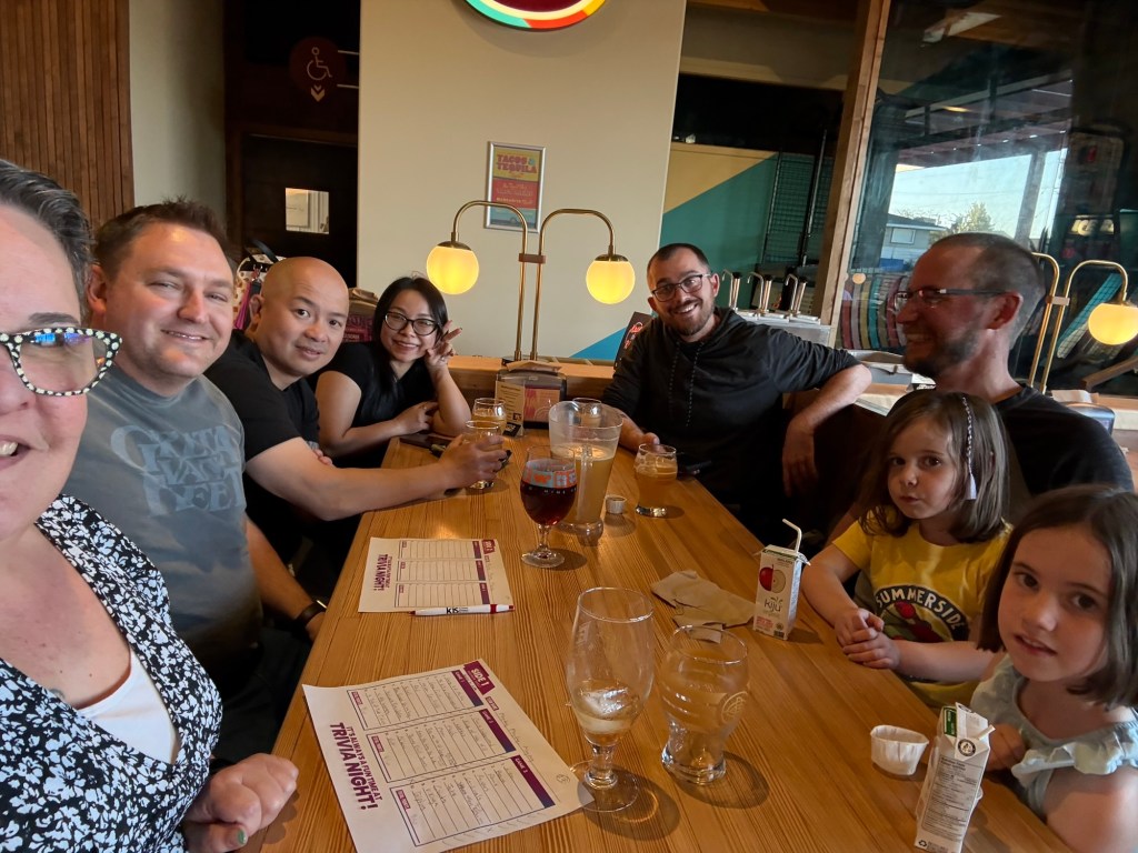 After work, I headed to Encore and Bill had just arrived. We sat and had an amazing visit about people and his family in our lives when we were married back in the 80s. There were so many questions I had about who had ended up where and it was a really great visit. Roger showed up and I invited him to join my trivia team for the night which was Huy, who was companied by but not playing due to language barriers,his wife, JD, Brett and me! Brett Brought Morgan and Riley as Jill had dinner plans. It was so sweet when Morgan came and asked me if she could call me grandma and I said Nana would work the best and now I am not Marnée to those two girls as well. I love being a significant figure in my friends lives. It is a legacy of the friends I’ve had that moved away. Brett and I have decided that we rock at trivia and it is pure joy for us to play . Our team kicked butt tonight. We only got seven wrong out of 80 and took first place so that each of us got to take home $32. It was only sad because they were so a few teams there and we did so well. The money would’ve been more on a regular night.