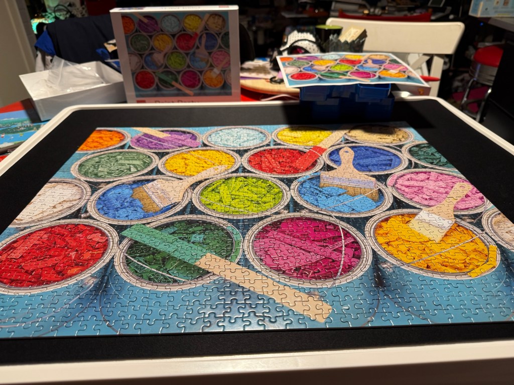 Once Home, I probably should’ve mowed the lawn, but it still had rained so much that it was pretty wet for how tall it is. Supposed to get sunny from now on so it won’t hurt to wait till Saturday. Instead, I did Lego. Well, a Lego puzzle that is.