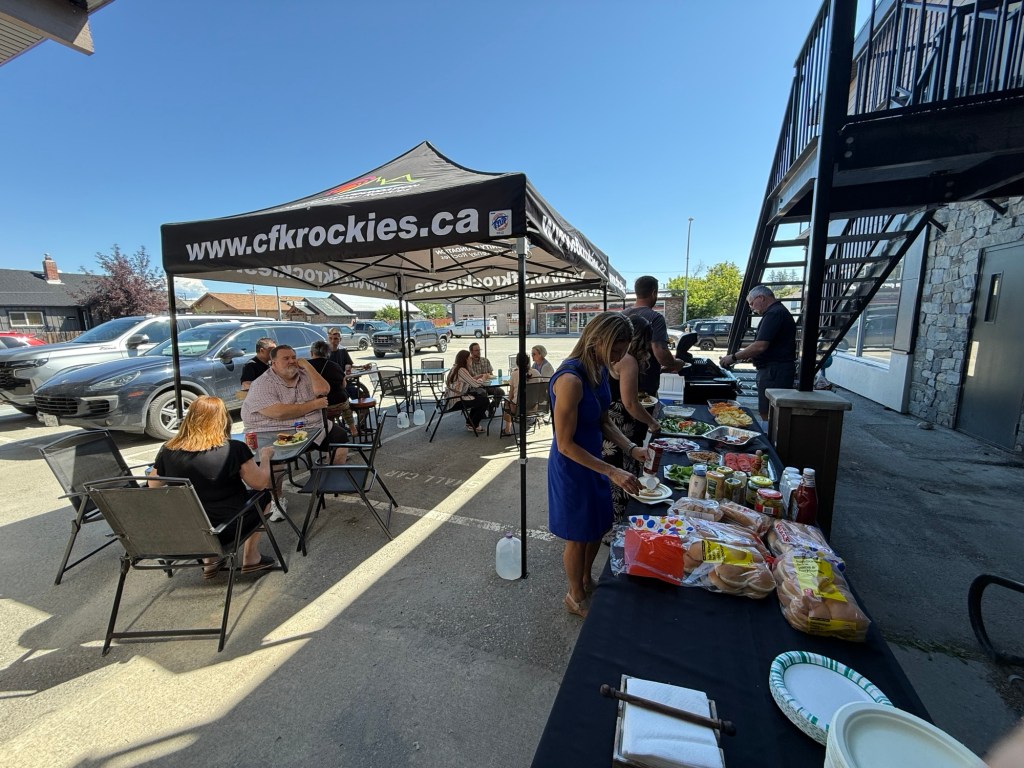 I got it this morning and put on my pretty new dress that I bought and for the first time since my ankle injury, a pair of wedged heels. I was pleased to see at the end of the day that there wasn’t a lot more swelling than usual so that’s a good sign. There was a barbeque at the Ground Floor today for our member mingle. Had some nice visits and made plans to play trivia at Brett and Jill’s tomorrow night.