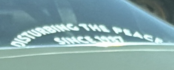 On the way to my Rotary meeting this morning, I was stopped at a light by a car that lived up to the deck on the back of it disturbing the peace since 1987. It did entertain me.