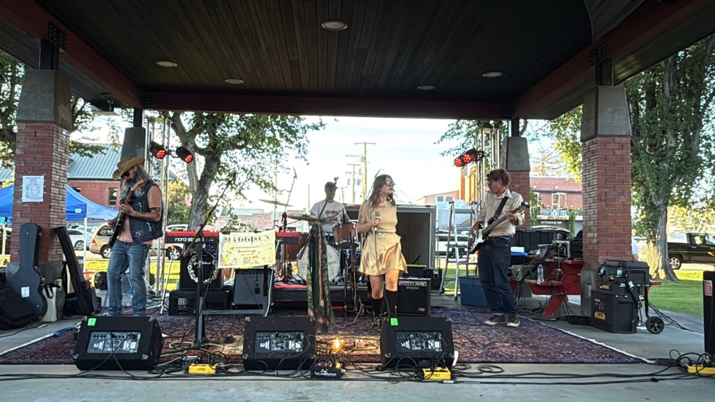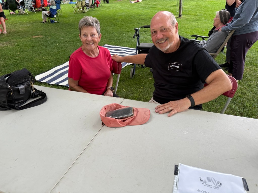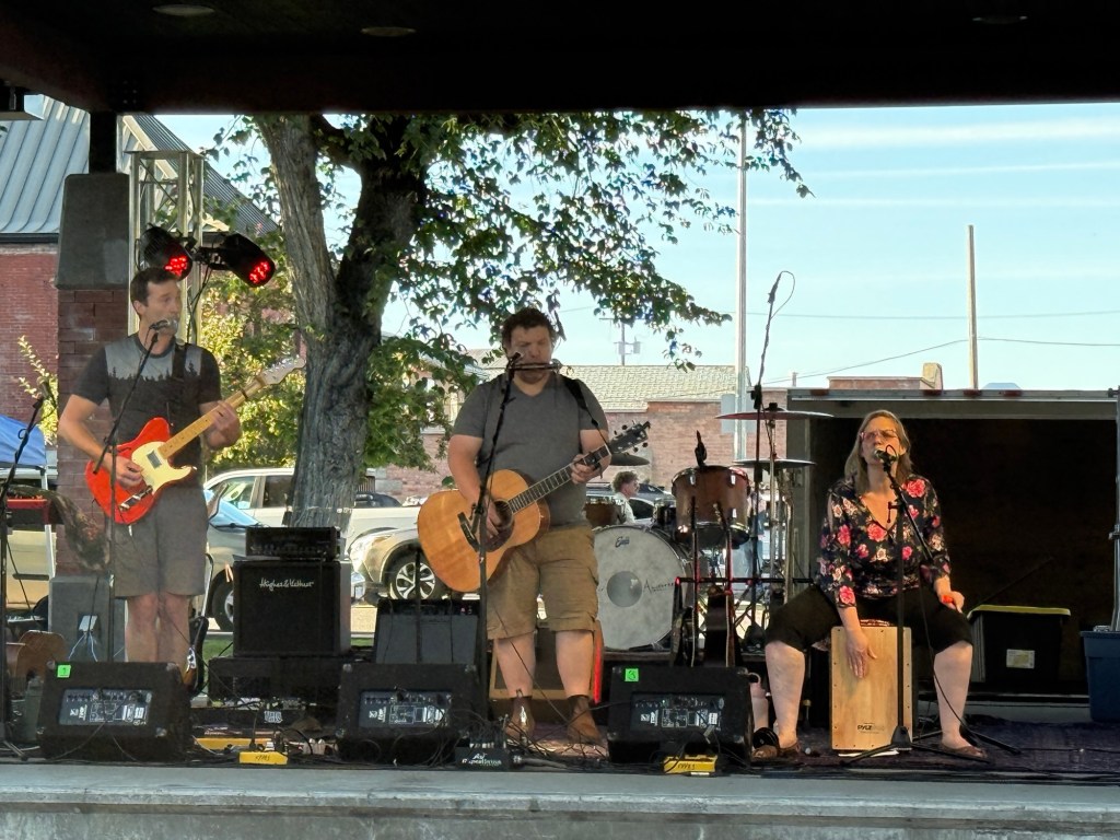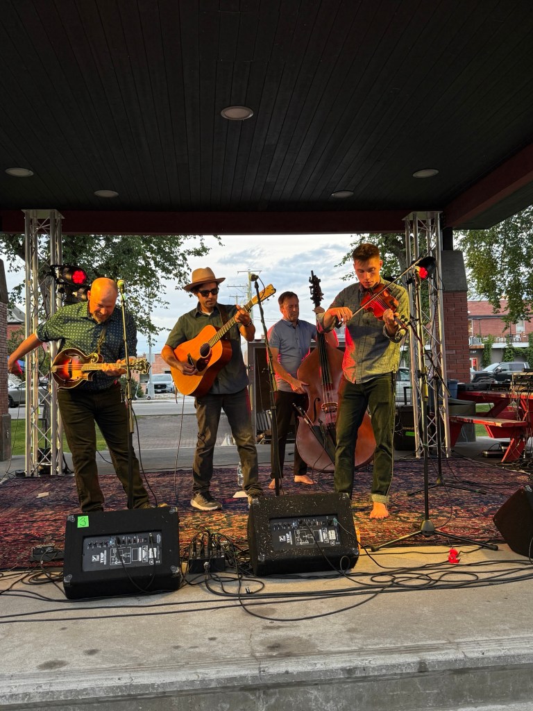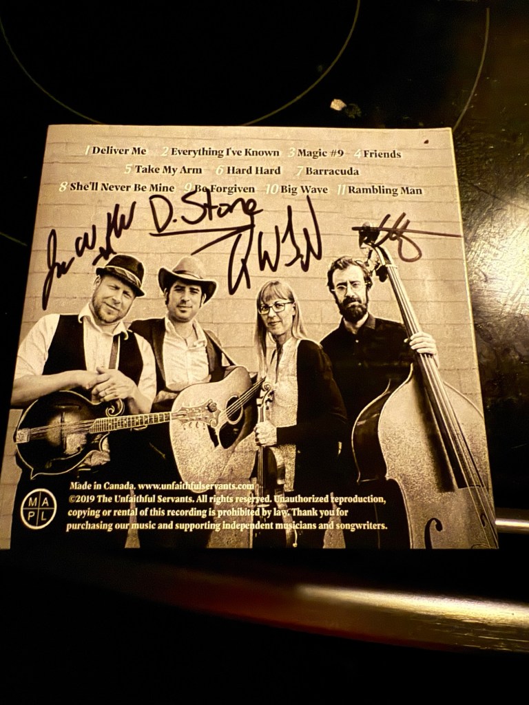 I got a lot of work done this afternoon and then headed out to meet Elva for a bite to eat at Fenwick & Baker before heading to watch the Unfaithful Servants from Vancouver Island at Summer sounds in Rotary Park. Quin, the fiddle player, I knew from my crew at music fest back in the day and they also played there in 2019. I wore my shirt with their name on the back and it was great to see him and reconnect. It was nice when Ward did a shout out that they were there because of me as I had recommended them last year and they are the first band that they brought back two years in a row. There was a really good crowd and the evening was lovely although there must’ve been a sound issue because the volume was not high enough. I did buy a CD and have a great chat. It was very nice to hang out with Elva and Monica joined us towards the end.