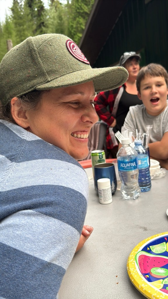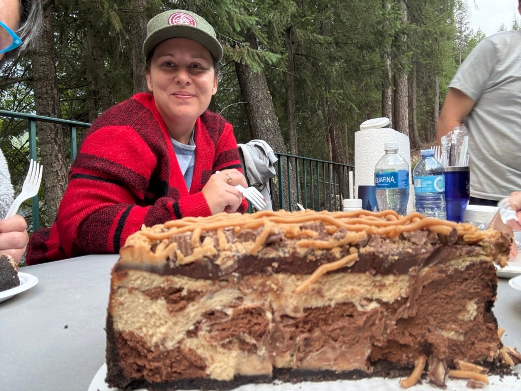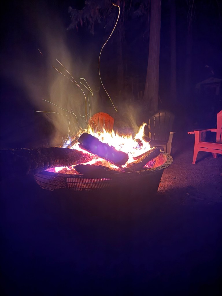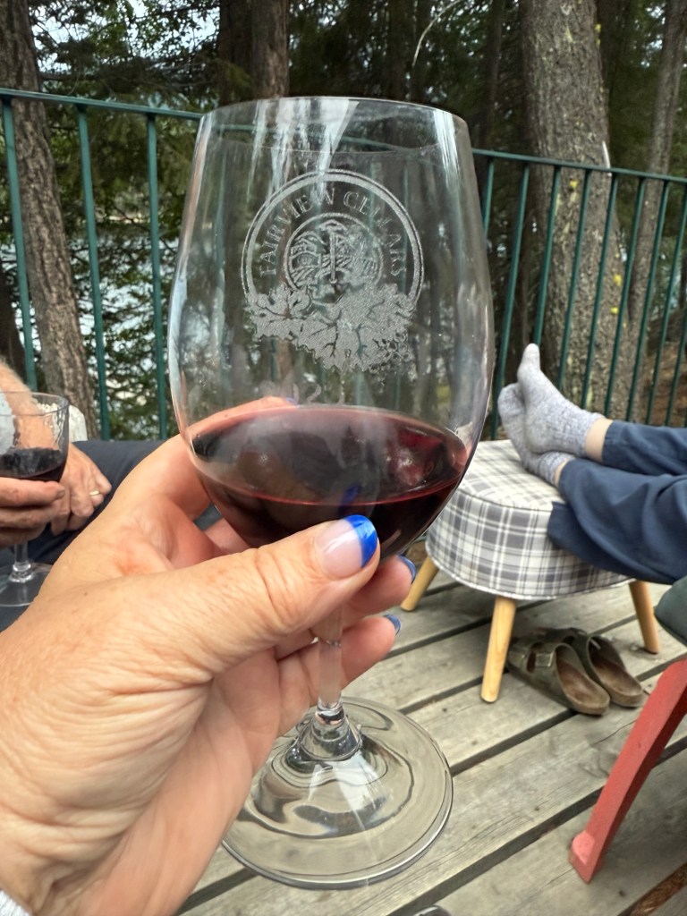 So much to get done today! Checked it off and headed to buy buns and snacks at Safeway before my nail appointment with Minh at 5. Turns out he’d had a scary experience of his hands seizing up earlier in the day and was going to cancel but saw it was me at days end and stuck it out. Unfortunately that made him running late and I finally was done and picked up my sleep over stuff to leave home at 7. It should take at least 45 minutes but I shaved off 15 to make it to the cabin by 7:30. Dinner was still available for me which was delicious; baked beans, brisket and potato salad. Rae’s peanut butter chocolate cheesecake was made by Jeff and was unbelievably good. I cracked a bottle of the ‘fancy’ wine that I was gifted by the owners after RTK, Chronos Cab Sauvignon and it was really good. We gathered round the fire and enjoyed each other’s company before the others all headed off to bed. I am sitting in the dark enjoying the fire. It is good to be me.