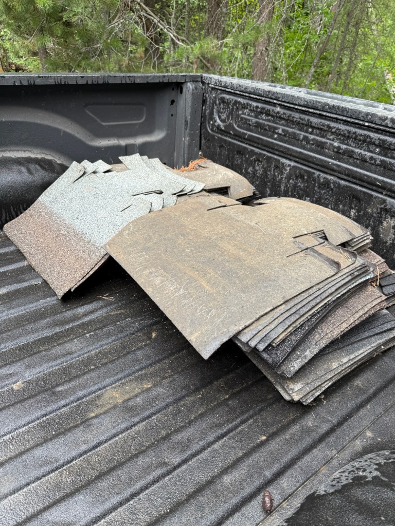 Jeff and Roger made a delicious pancake breakfast. Roger got me to drive his truck up the access road where he met me with a quad and I hopped on to do a couple trips gathering shingles to redo my shed. Bill kindly told me to take what I need. we took the time to pick and eat some huckleberries while we were at it. I also took a picture of the one I mistakenly ate which Roger said may be poison but I used an app to identify it as Brides Bonnet and I shall not die