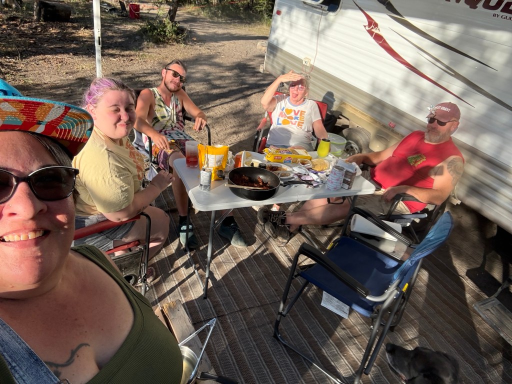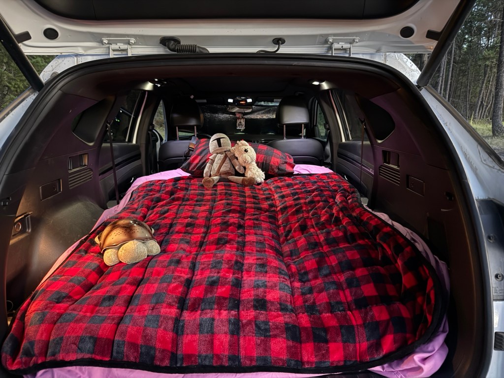I was very impressed by the outhouse that someone built and not gonna lie and very grateful. I set up my car but only with the inflatable mattress in the back I decided not to put the tent over as I’m leaving tomorrow and it is very dusty and dirty. My battery pack for my CPAP and turning my phone is working well and I’m just so grateful to be here.