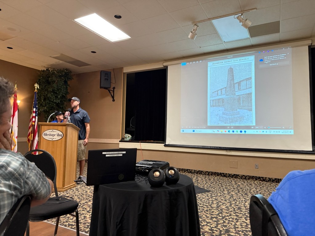 The other speakers at the meeting were relatively young veterans who have formed the committee about the restoration and upkeep of the cenotaph in Rotary Park. The history of it was very interesting and it has moved four times and shall not be moved again, but they wish to build a fence around it and I thought one of the most beautiful things was that they were not here to ask us for funds, but rather ask us how they can raise funds. It was actually a very beautiful moment. I stopped so Ashley could let her dog out and ducked the Jeep that was parked beside me.