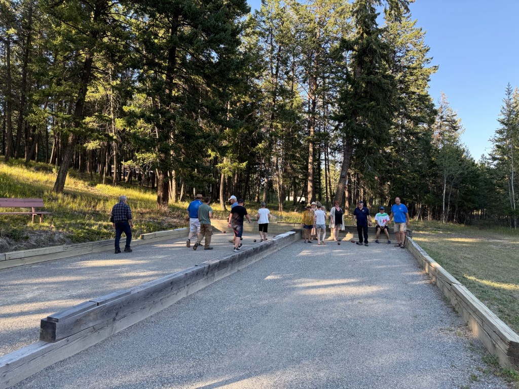 At 5 pm I joined the group gathering for Rotary in the Rocks it was outdoor bocce at Colombo and I found myself having a great time in spite of being seized up. It was lovely to chat with Ben and Sven about their immigration experiences as teenagers. Two rounds of bocce was a great deal of fun. And I was sent home with leftover sandwiches, veggies, fruit and peach pie! Lunch for tomorrow to look forward to!
