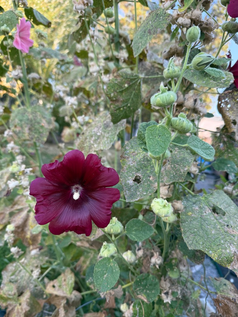 It was 27C today! My Hollyhocks are going to seed and blooming at the same time