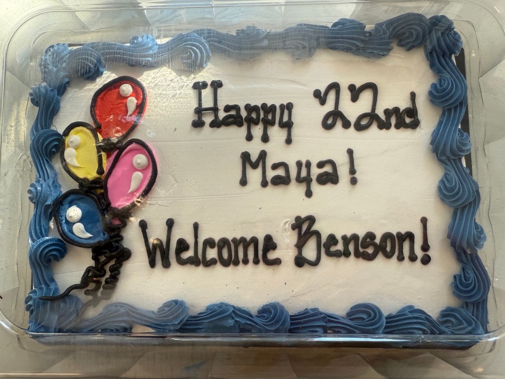 I spent the day onsite at a client and left to pick up the cake I’d ordered and head to help Rae with dinner. Greg, Cassidy, Aiden and Maya and Benson arrived. Ashlée picked up Mom and we all had a lovely turkey dinner. I got good Benson time. He is very calm and alert and incredibly strong for being just under two months old.
