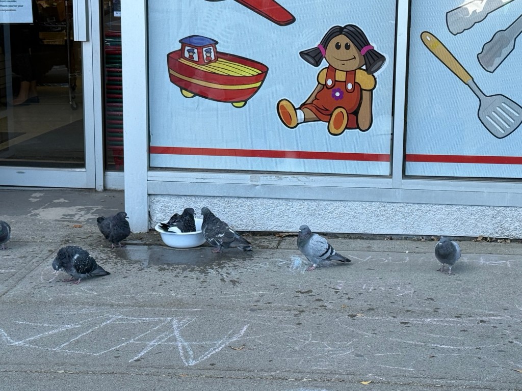 I left the park and headed to several spots downtown, looking for a nice shot glass from the area to bring as my gift swap at the meet and greet on the cruise. I didn’t have any luck, but was amused by the pigeons playing in the dog bowl outside on the street.