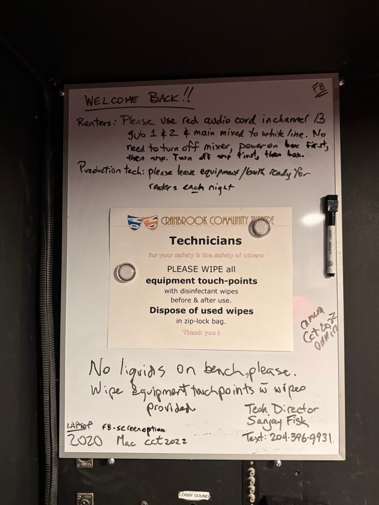 I believe my legacy there, though was being part of this Theatre renovation as I got to design the tech booth in my role as Tech Director. It amused me to see my own handwriting, still on the board, after not being involved for so long. Seems all that changed was the name and number of the TD