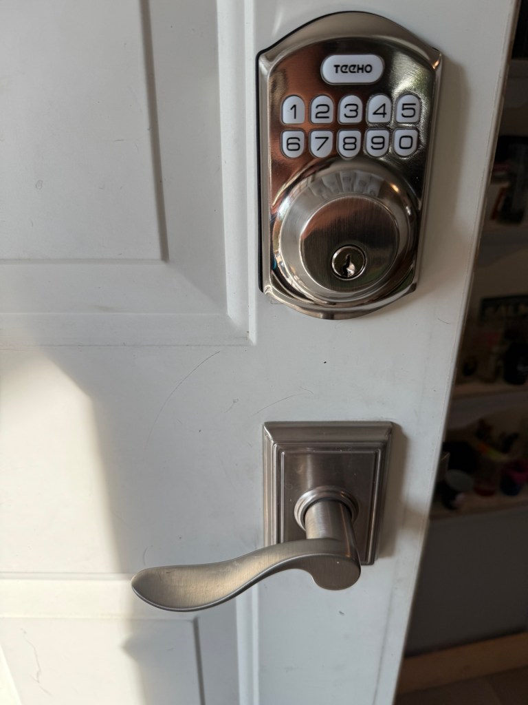 A couple weeks ago I got a notice that Kevo would no longer be supporting the app that opens and closes it with the use of my phone. After November, something I would need to use a key, which is a pain for many reasons so I ordered a different one from Amazon that had decent reviews and installed it today. I don’t think it is as good as quality, but it looks good and more or less matches my handle and will be much easier. Just having a code. I can give to someone by text if they need to get in.