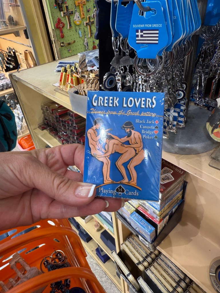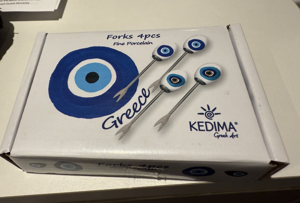 When in Oia, I had a great experience with a Lo al as I purchased olive pics that I love. I also bought my first shot glass on the trip, but it is wrapped up so no picture. I did meet the people on the tram early in the morning who got my gift in the gift exchange and they were happy with it which was lovely.