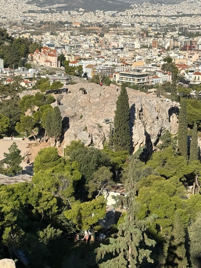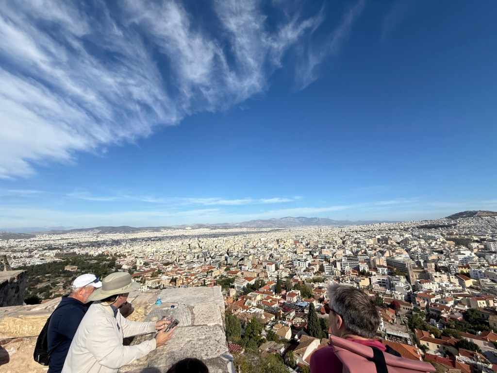 Firstly, he took us to the top of the hill to survey the surroundings. As far as we can see in all directions is Athens spread out.