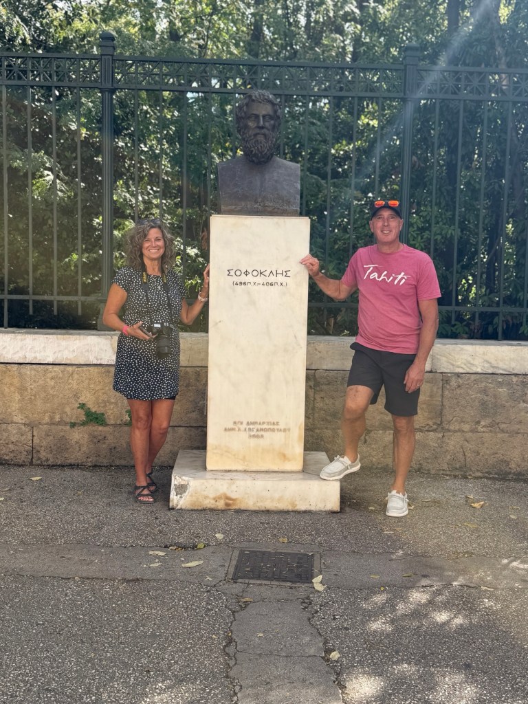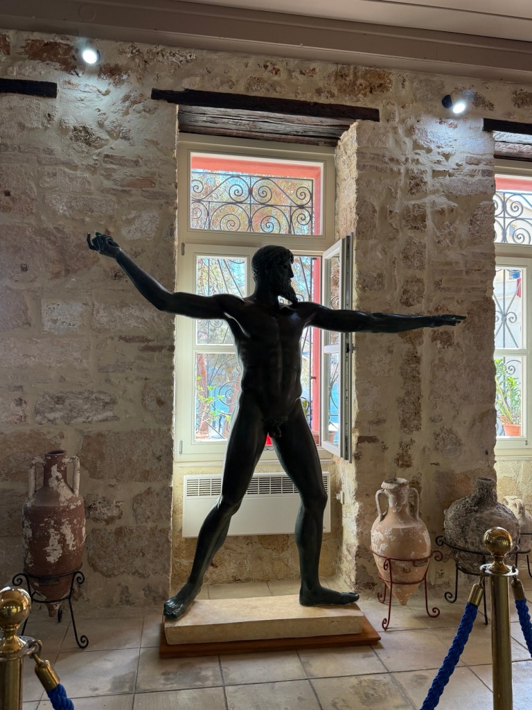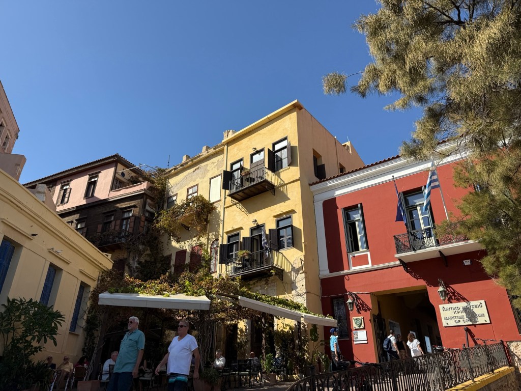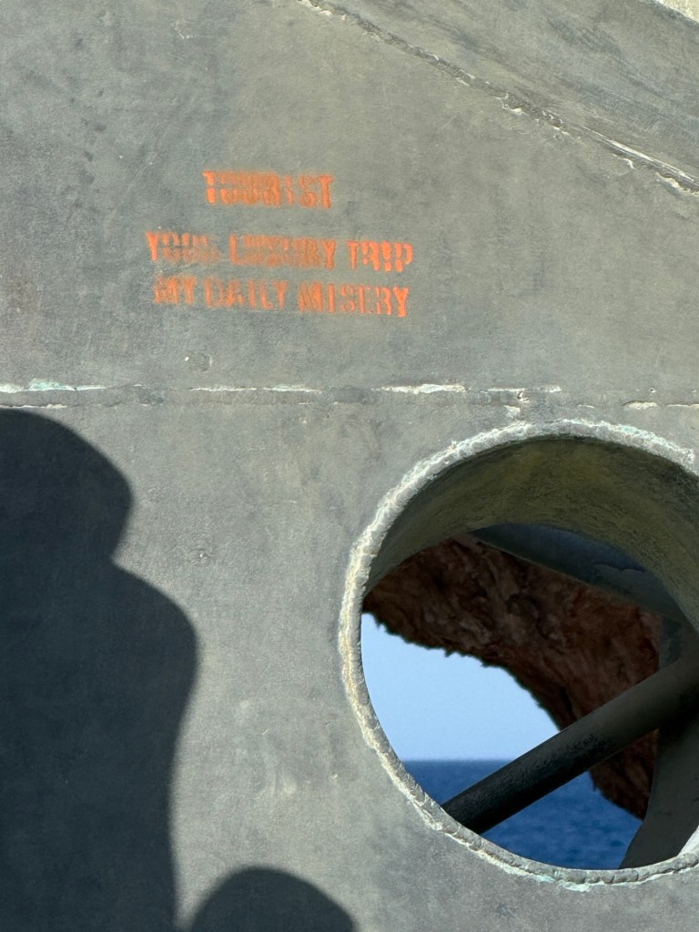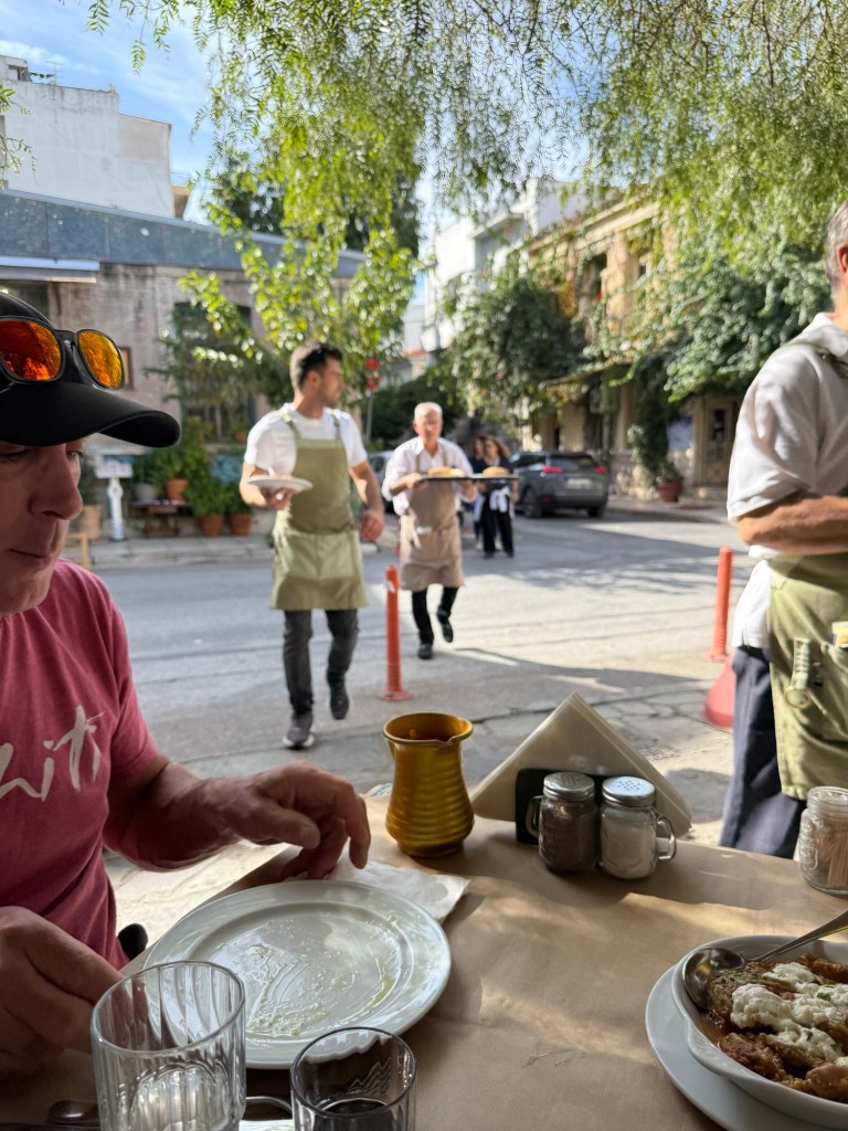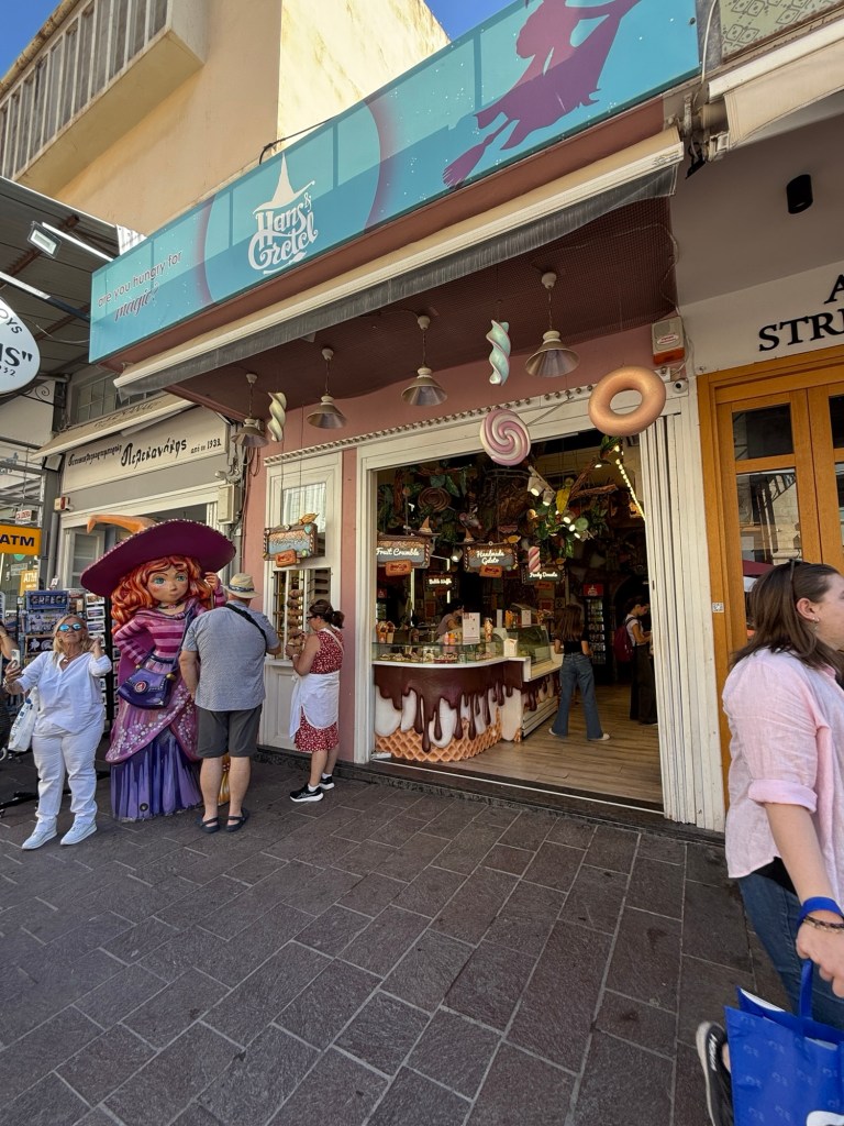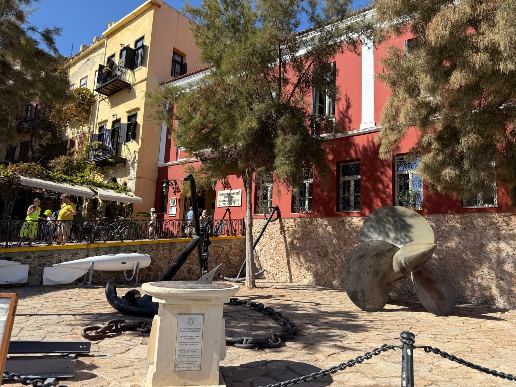 Dave, Deb and I soaked up the beauty and shopped a little as we made our way to the harbour. Once there, we waited for Madhu and Prav, enjoyed a local beer, and wandered. After a bit I broke off and let the couples explore together. It was disappointing to see the political statements about tourists like graffiti in a certain area. I enjoyed the Maritime Museum, bought myself a spinny ring with the Greek Eternity symbol, earrings with the ‘eye’, and a magnet for my cat lady.