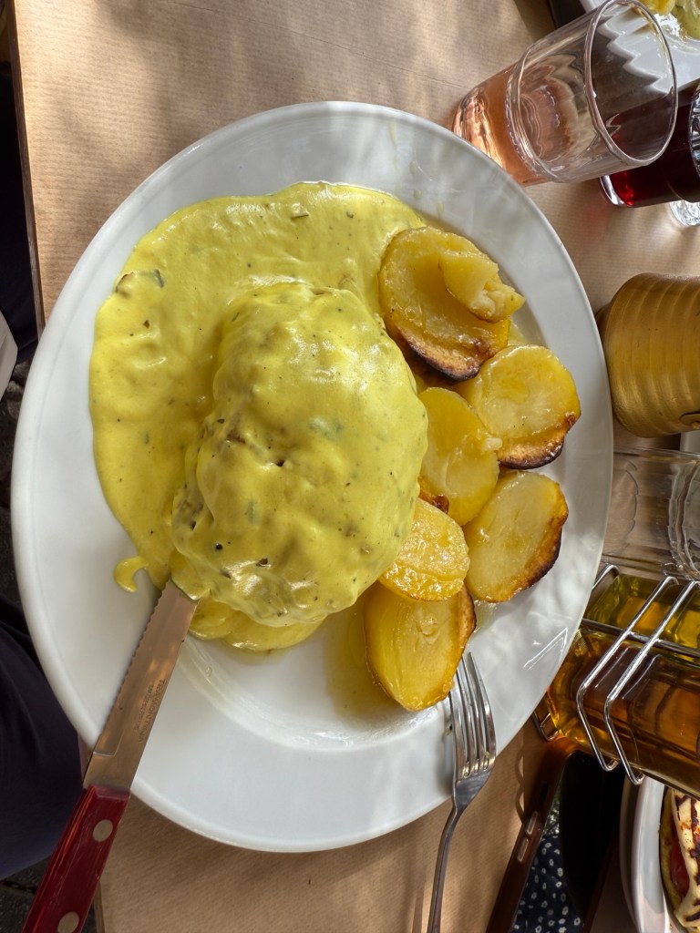 I made it home with a shit ton of steps and got changed before taking a short nappy. Deb and Dave arrived home and they got ready and then we wandered down through just the fair until we found a lovely sidewalk restaurant and enjoying incredibly good service and exquisite food and wine.