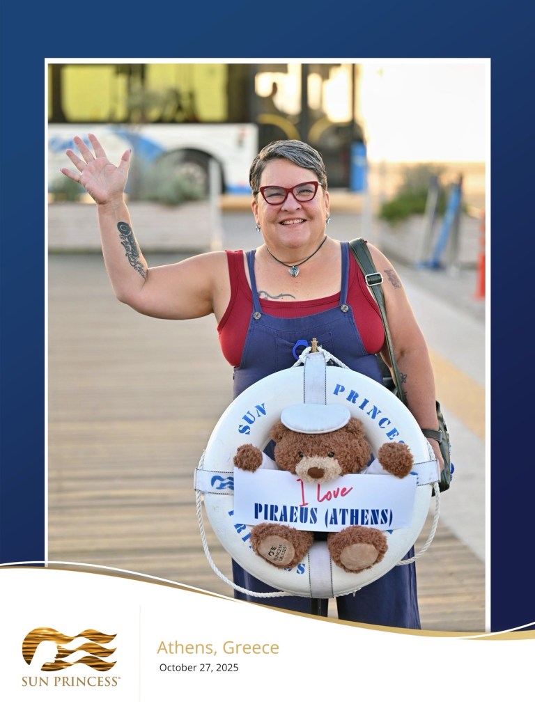 Back on the ship, I quickly changed my clothes and connected with Ginger and her husband who Lord knows I can’t remember his name and I’m going to have to ask Dang. They were in the American diner, so I went to join them there and had some delicious fish and chips and good conversations and started messaging with Deb about plans for tomorrow in Kusadasi. I listen to music for a little bit in the Piazza and had a martini and now I am back in the room having checked in on work and my email and it’s time for bed. It has been a very full full day.