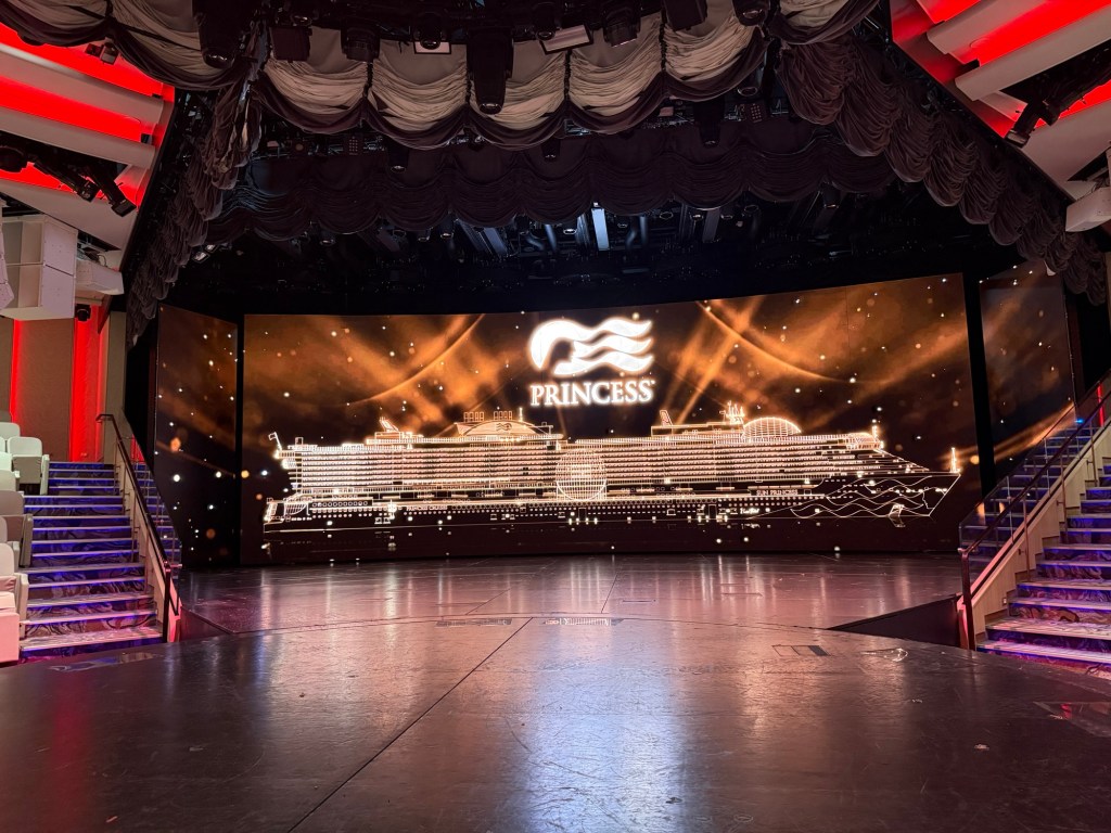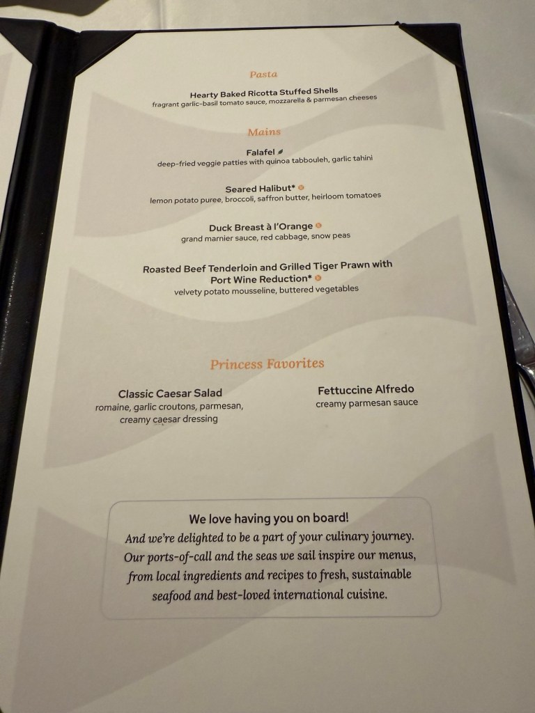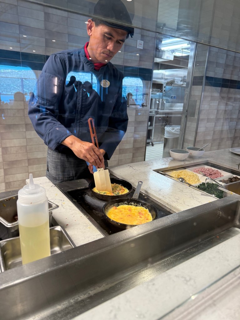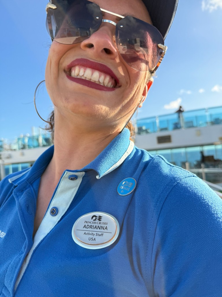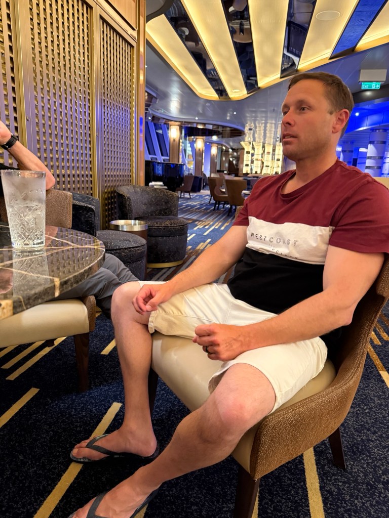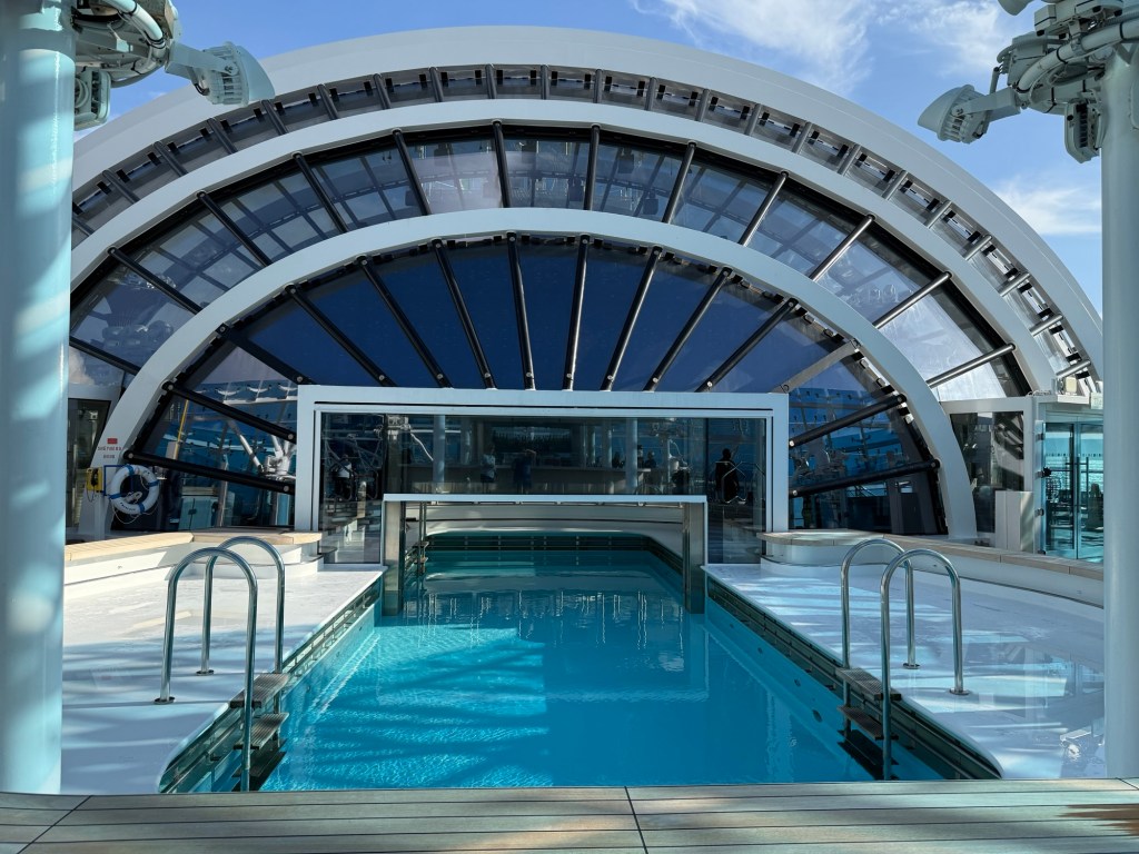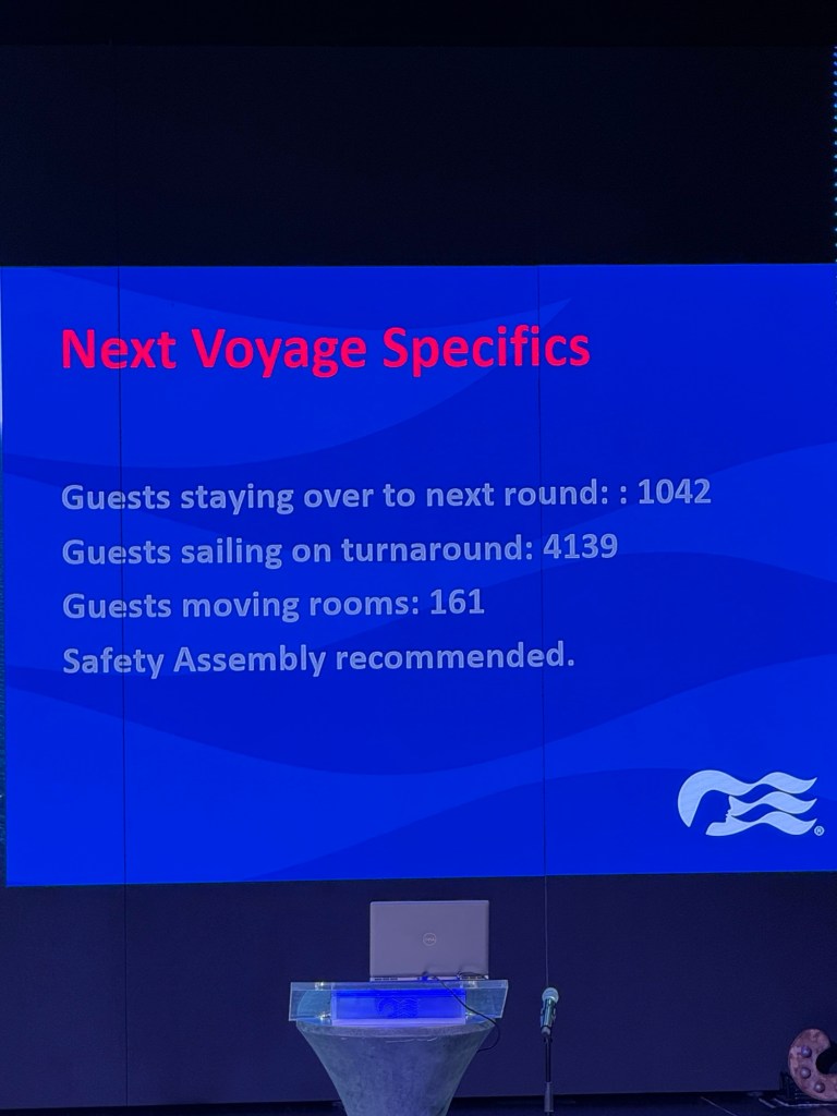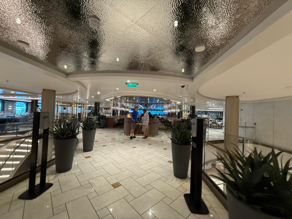 I didn’t have an alarm set yet. I still woke up early, so I texted Wendy because I knew she would be up and met her for real breakfast. I had a French toast and she had a frittata, and then we went for a bit of a tour and then sat on the Lido deck with our feet in the pool. It was nice there was hardly anyone around because it was so early in the morning. My ankle has been bothering me quite a bit from putting it through the paces. after that we went to the Princess Arena for a Life at Sea presentation by our cruise director, Cole, who is a 28 year old retired dancer from New Zealand. He showed us how the crew lives behind the scenes
