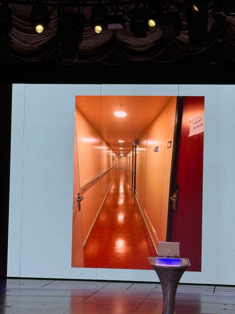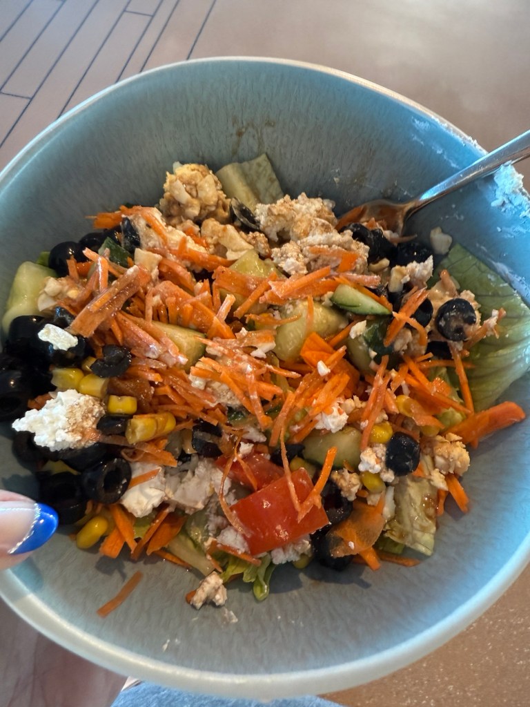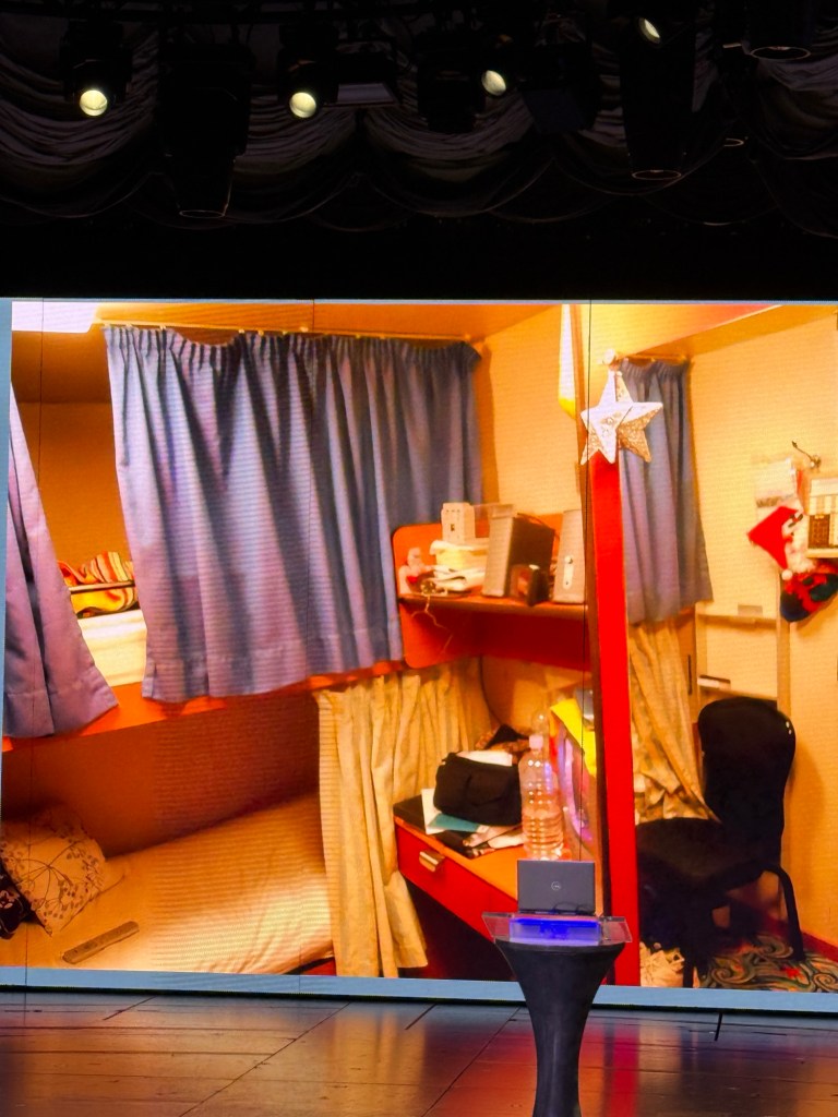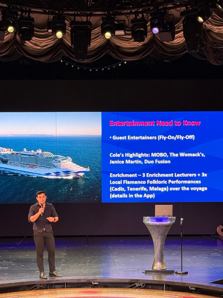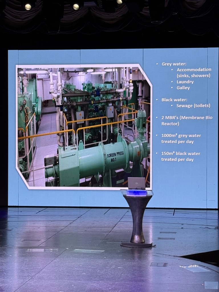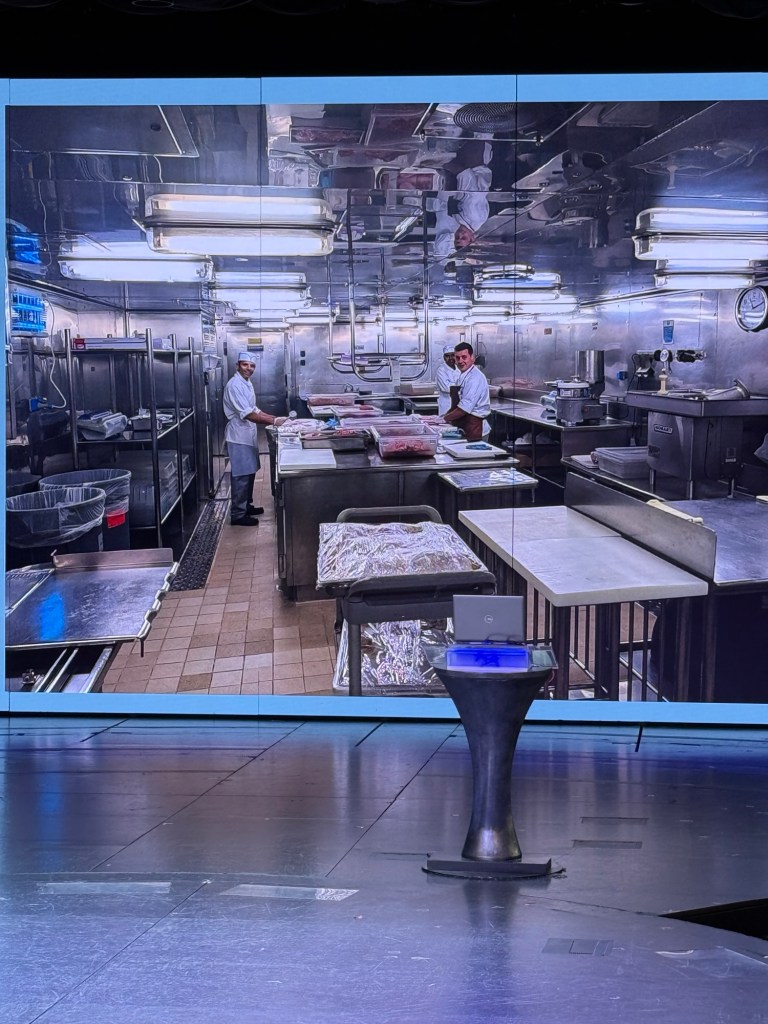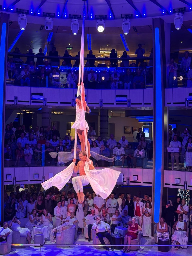 I didn’t have an alarm set yet. I still woke up early, so I texted Wendy because I knew she would be up and met her for real breakfast. I had a French toast and she had a frittata, and then we went for a bit of a tour and then sat on the Lido deck with our feet in the pool. It was nice there was hardly anyone around because it was so early in the morning. My ankle has been bothering me quite a bit from putting it through the paces. after that we went to the Princess Arena for a Life at Sea presentation by our cruise director, Cole, who is a 28 year old retired dancer from New Zealand. He showed us how the crew lives behind the scenes