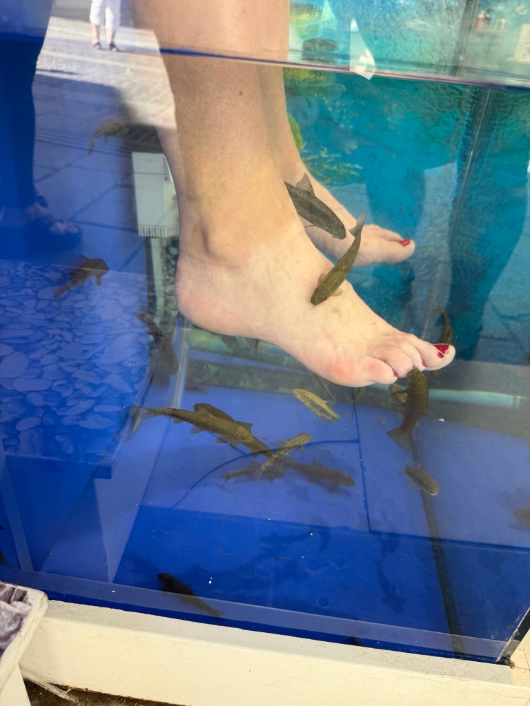Our next top was for lunch and I chose a beautiful spot on the beach where I did take the time to relax and enjoy and incredible fresh crab salad and a glass of local white wine. The whole experience was surreal. I did manage to enjoy the surroundings, put my feet in the AMC and purchase an eye design which signifies boundaries for evil.