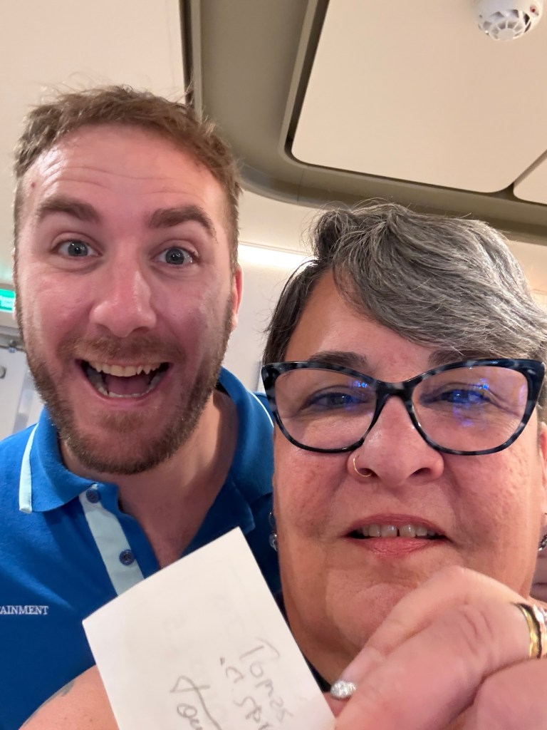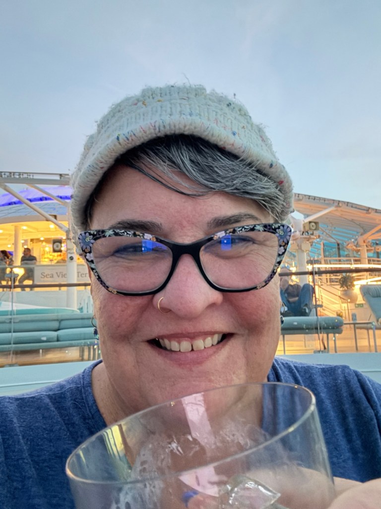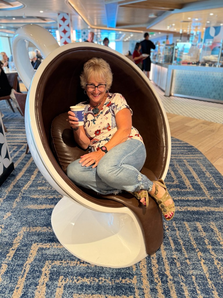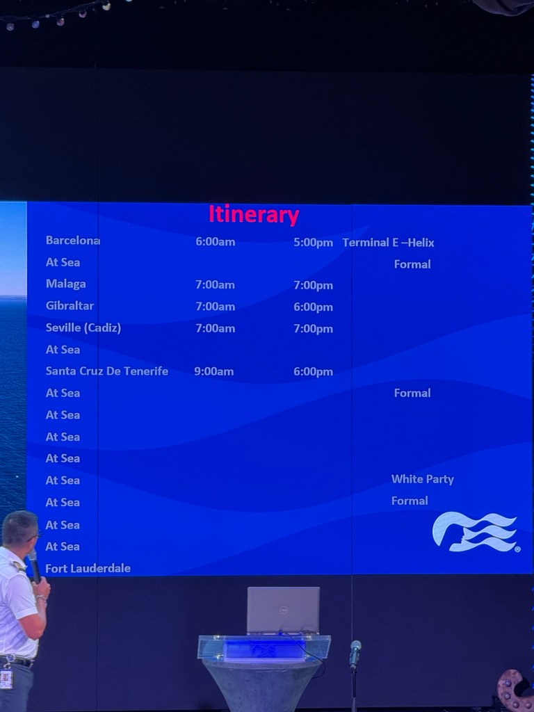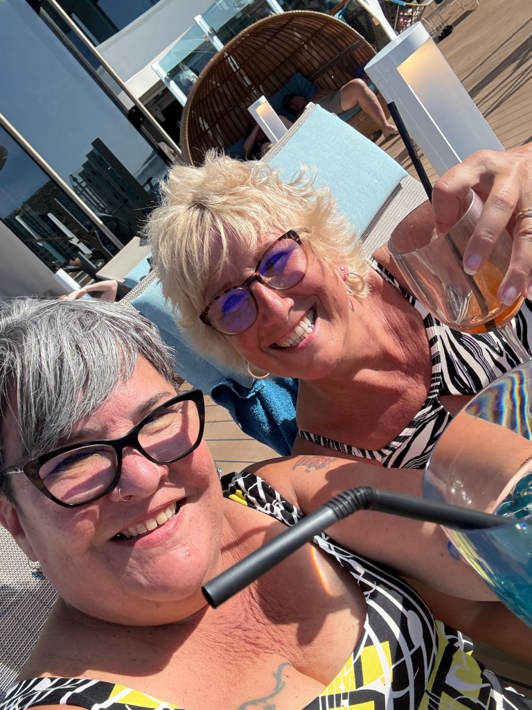 I was up at a decent time and Wendy messaged me to join her for breakfast. She had a lovely spot beside the window and I had a lobster. Benny was amazing. We hung out for the morning, including going to sessions about the transition from this cruise to the next one as I learned I am actually on the back-to-back cruise and when Wendy and her crew and Ginger and Glynn get off in Barcelona, that will be the end of the first leg of the trip. When I come back to the ship after my day in Barcelona, I will be having a stamp in my passport and officially have left the EU, even though it is weird because we are still going to Seville and Tenerife that are part of the EU.