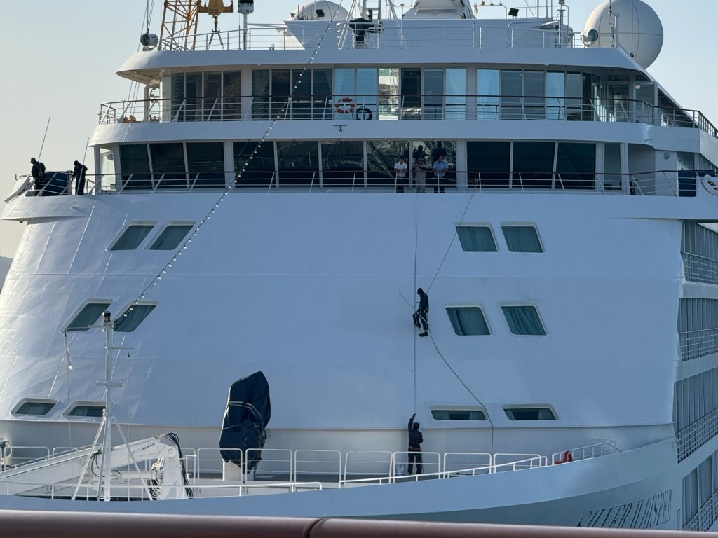 I met up with Wendy on the afternoon deck for a nice visit as we watched the ship across the way being maintained.