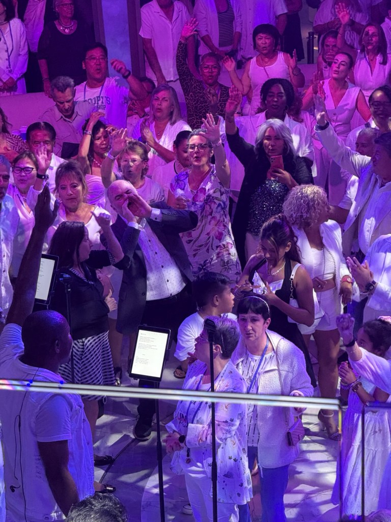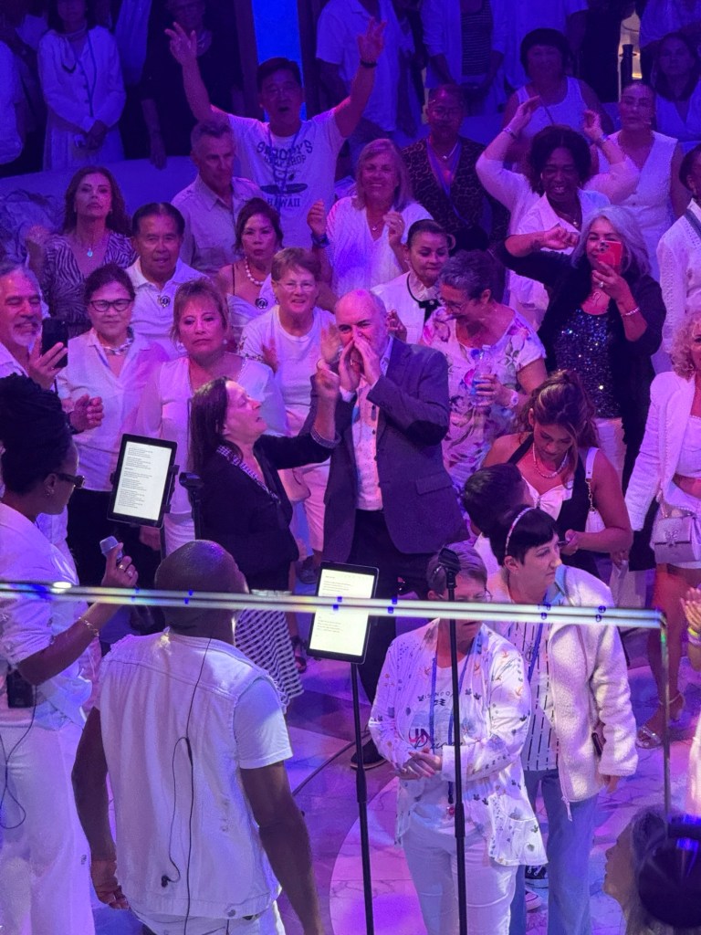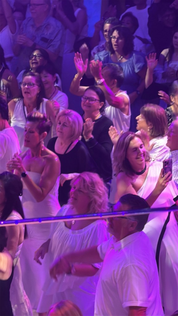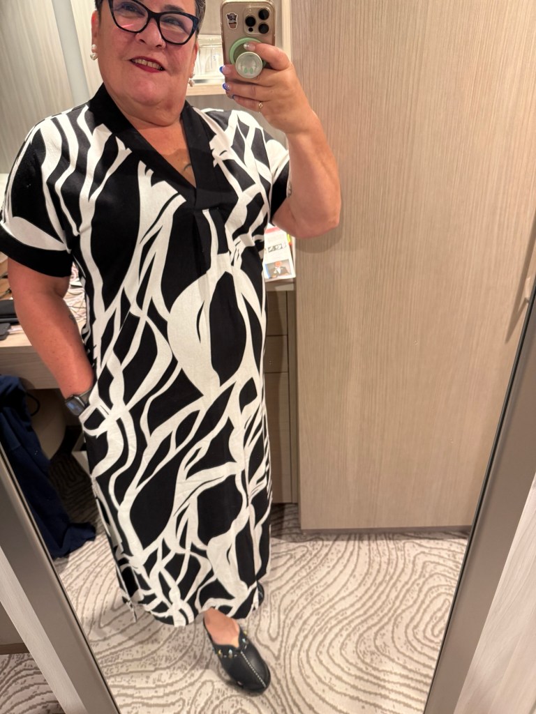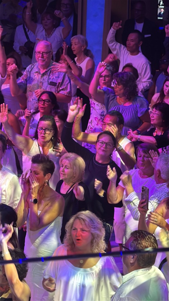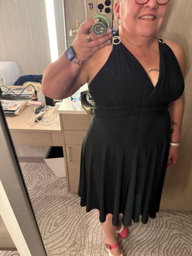 I actually did a lot of things today, including bingo game and food with friends, got a few payroll done for back home, met Wendy for a dinner, my treat at the crown grill where we had some great deeper conversations and a man proclaiming to be a matchmaker said there was a guy at the bar that I needed to meet and it turns out it’s the same person that the bartender said several months ago I needed to meet. Unfortunately, we met tonight and he leaves the ship Saturday morning. He’s from outside of Toronto and kind of my type but I’m not sure entirely that he was interested however, I found it interesting that two different people wanted me to find my someone. After Wendy left to go to bed and I had a beverage at the bar chatting with that gentleman I decided to head to the masquerade ball where we are encouraged to wear black and while I was standing there watching one of the lovely crew members recognize me and drew me out onto the dance floor where I had a little fun and as I was heading back to the elevators to go to my room, a tall, gorgeous woman stop me rearrange my outer layer to show more push the girls up into business and said there you go. It was truly an awesome moment. It was a shame that I was just getting a little later and heading back to my room because she clearly saw something in me.