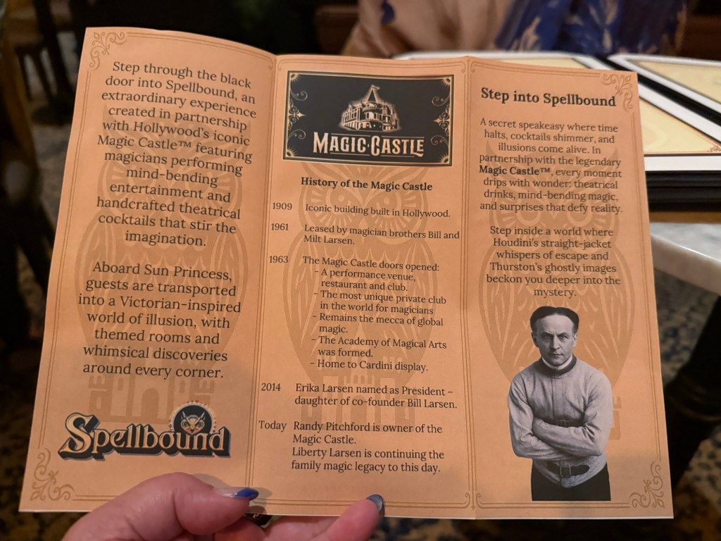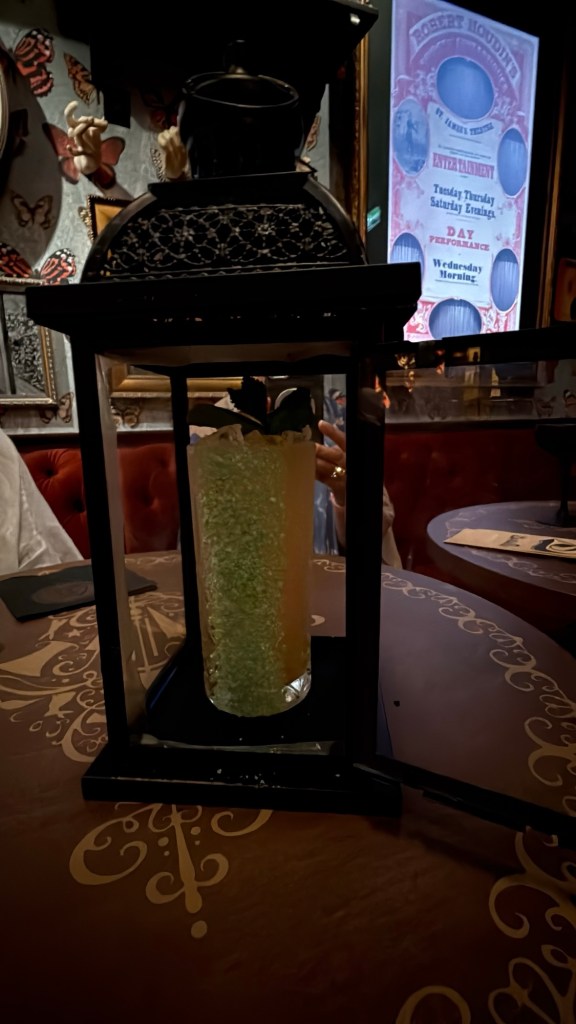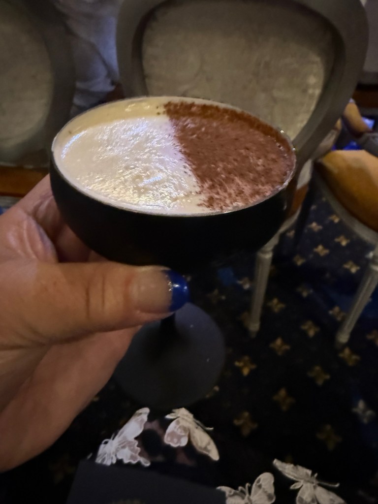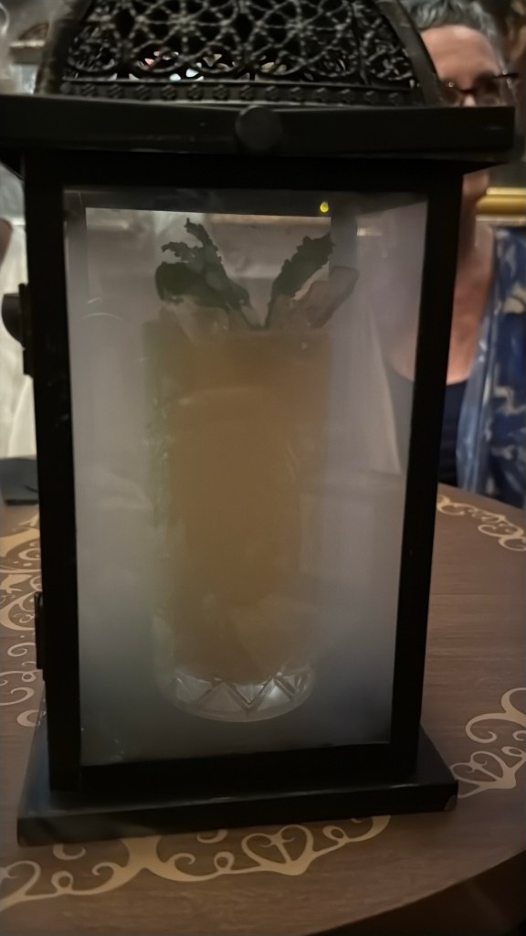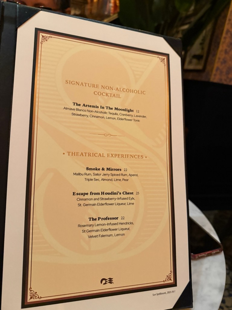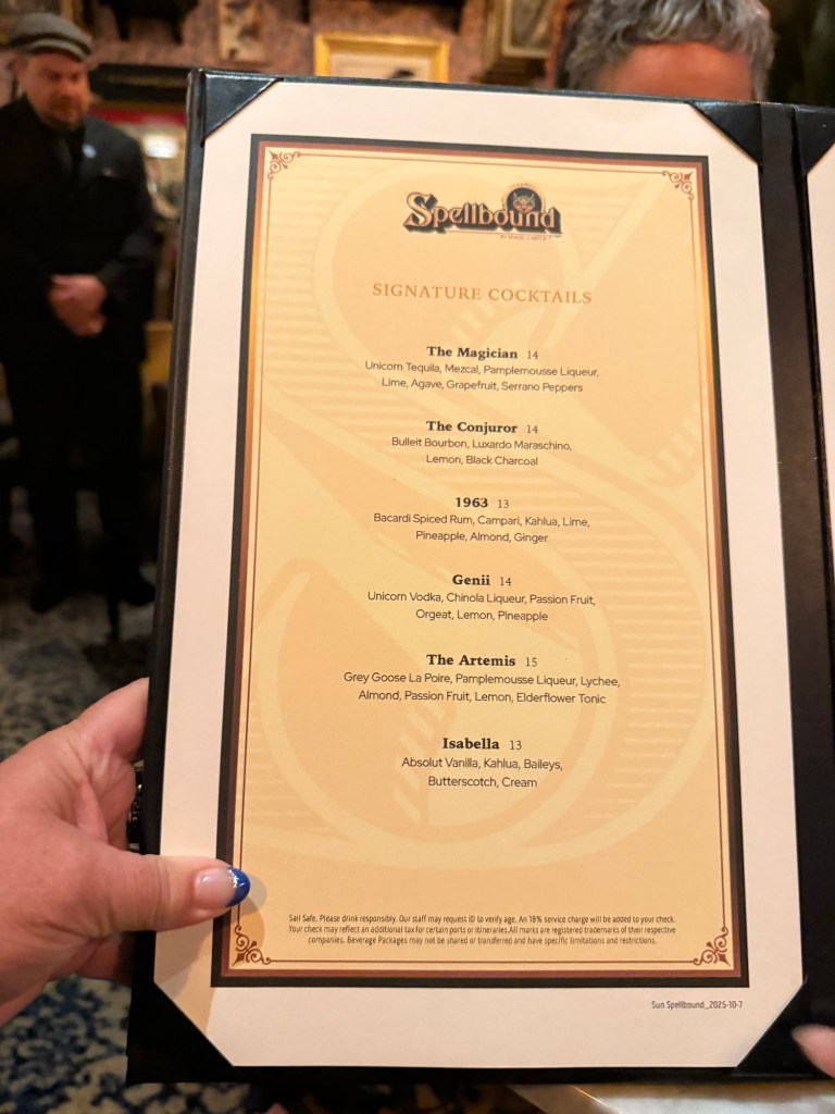 I just had time to return to my cabin and change into my whites which all turned out to be way too see-through so I wore one of the dresses that I brought and met Wendy‘s girls at Spellbound. Much like a Disney World ride it is very detailed and well done. The show came with a couple of drinks, some time hanging out in the private spellbound bar and then a 20 minute comedy magician show that was really pretty good. I also ordered the smoking mirrors drink. It is modelled after the famous magic castle in Hollywood.