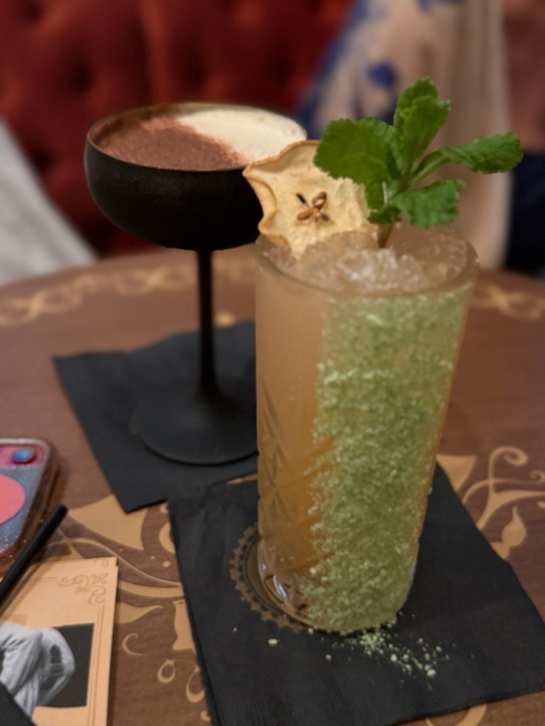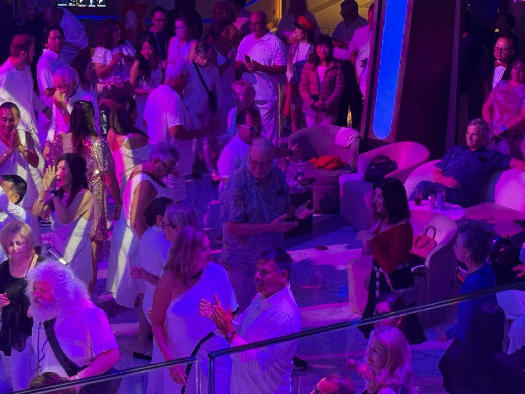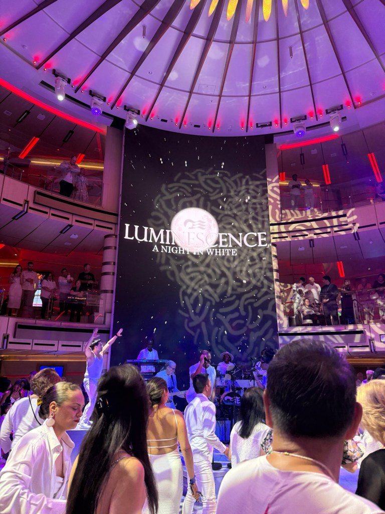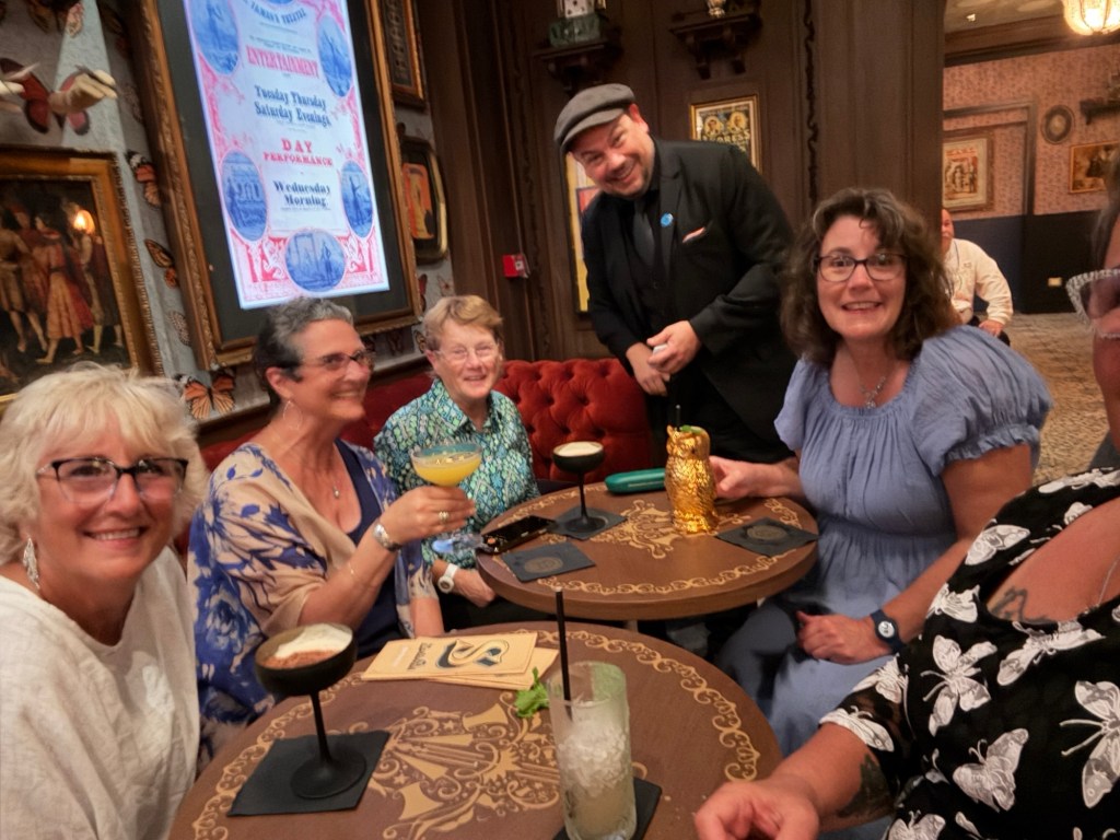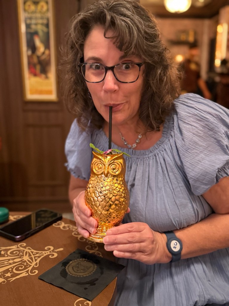 I just had time to return to my cabin and change into my whites which all turned out to be way too see-through so I wore one of the dresses that I brought and met Wendy‘s girls at Spellbound. Much like a Disney World ride it is very detailed and well done. The show came with a couple of drinks, some time hanging out in the private spellbound bar and then a 20 minute comedy magician show that was really pretty good. I also ordered the smoking mirrors drink. It is modelled after the famous magic castle in Hollywood.