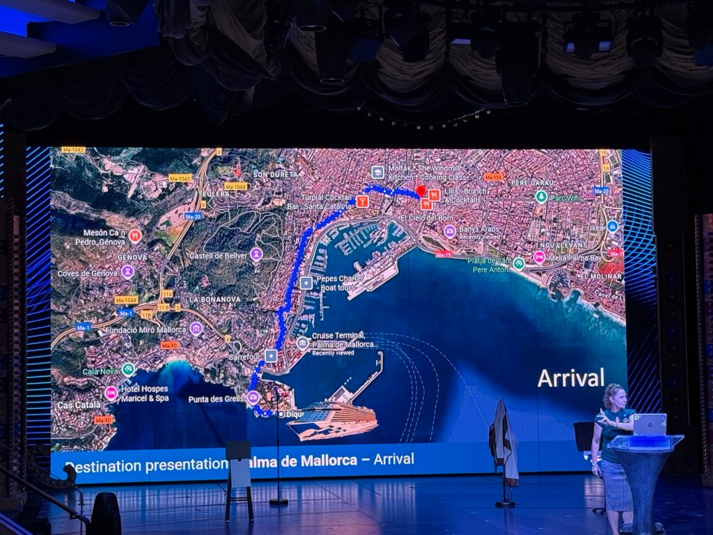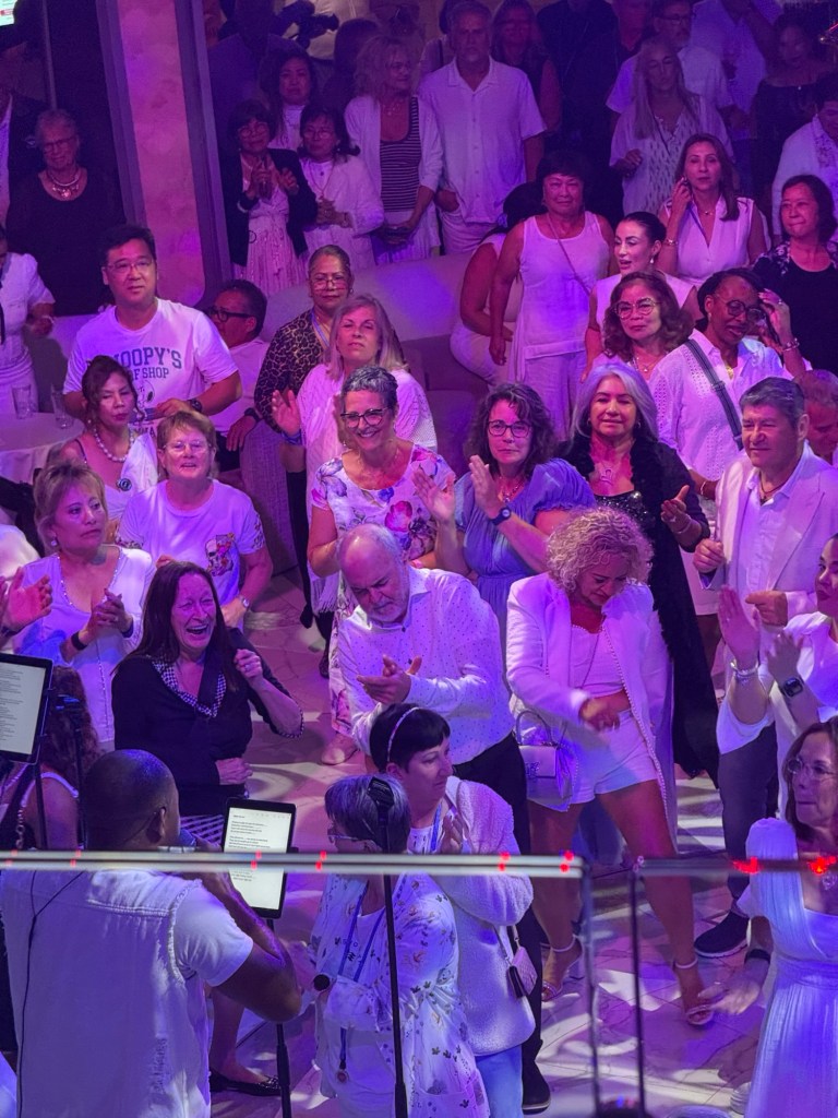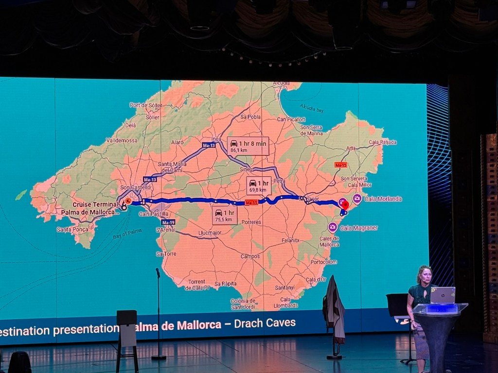 I was up early, so I managed to finish payroll and invoicing before going down to meet Wendy for our princess excursion. We shuffled off onto our bus and took an hour drive across the island to the Drach Caves. We passed where Rafael Nadal grew up and stopped at n Porto Cristo where his boat was in the harbour and his house was on the hill. The ‘Dragon’ Caves were simply extraordinary. It lived up to everything that I hoped it would be and even more. We were allowed to take pictures, etc., until a certain point when the boats would be coming out. They were incredible; a pianist, and three string players formed an orchestra that played in the darkness of this underground lake. I was very moved and thrilled to get to be in a boat and I shall let the pictures speak for themselves. I did have fun dressing as Waldo today, or Wally as I was more commonly referred to.