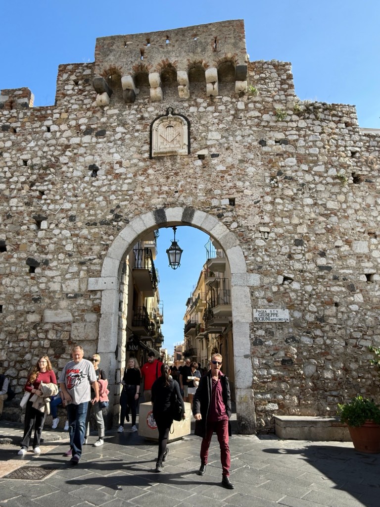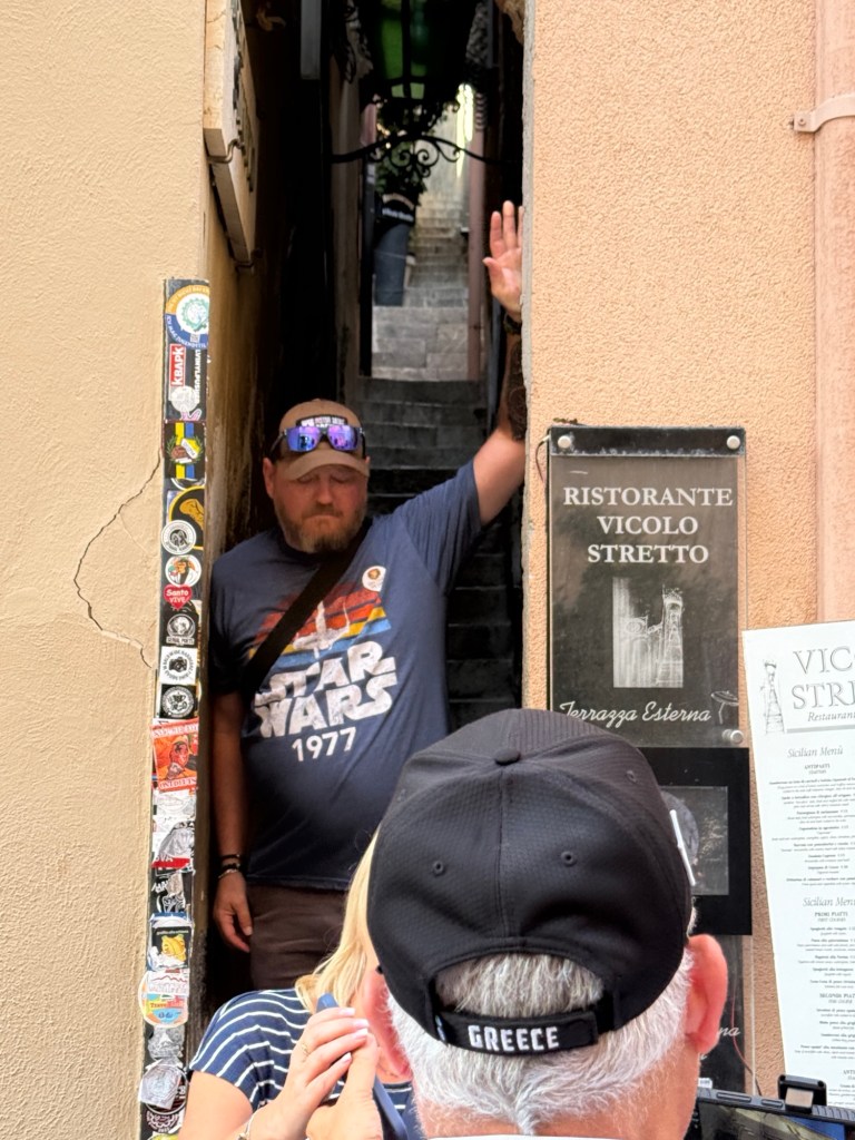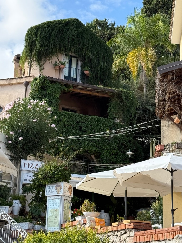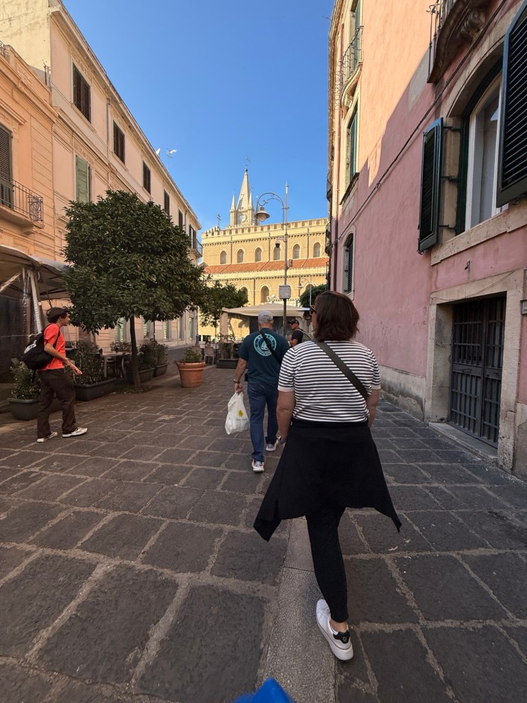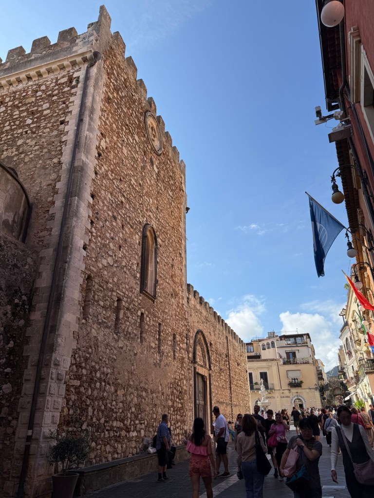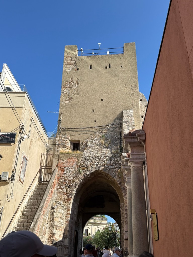 We took the bus to Castelmola and the whole experience was amazing with incredible scenery and windy roads. Once there we wandered in and out of shops and I went off on my own up into the castle itself and enjoyed all of its beautiful overview of the area. I had forgotten my earrings so I did buy a new pair which are the symbol of the wagon wheels in the region. There was a penis bar here which was unusual. We did not stop for a drink.