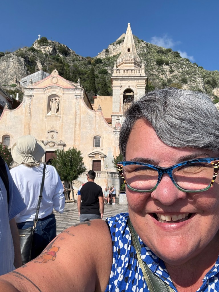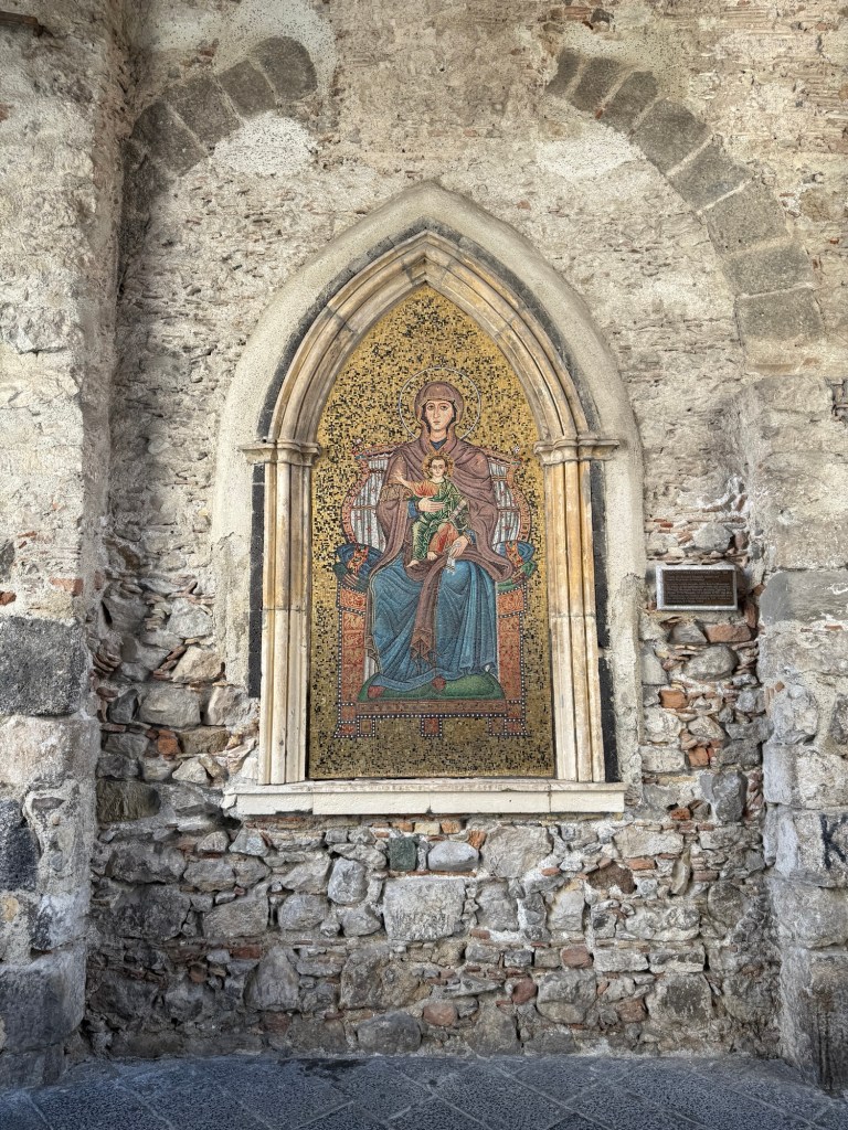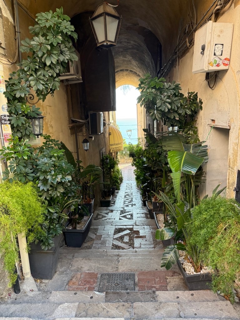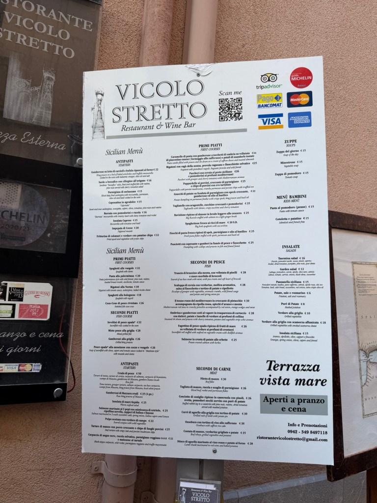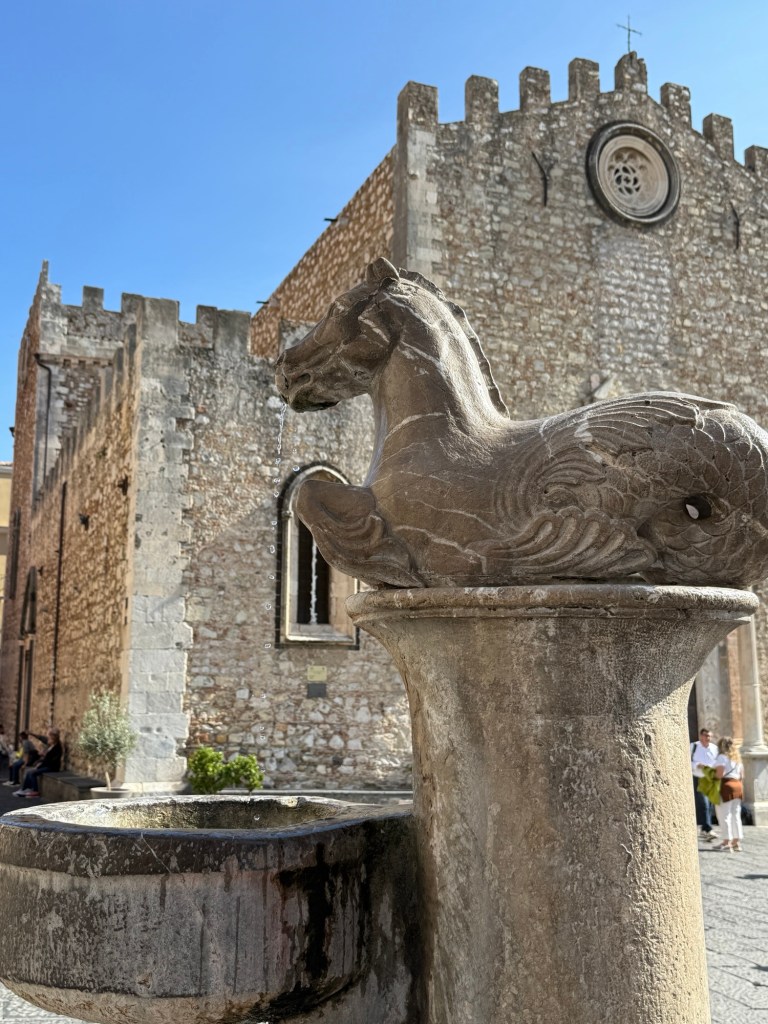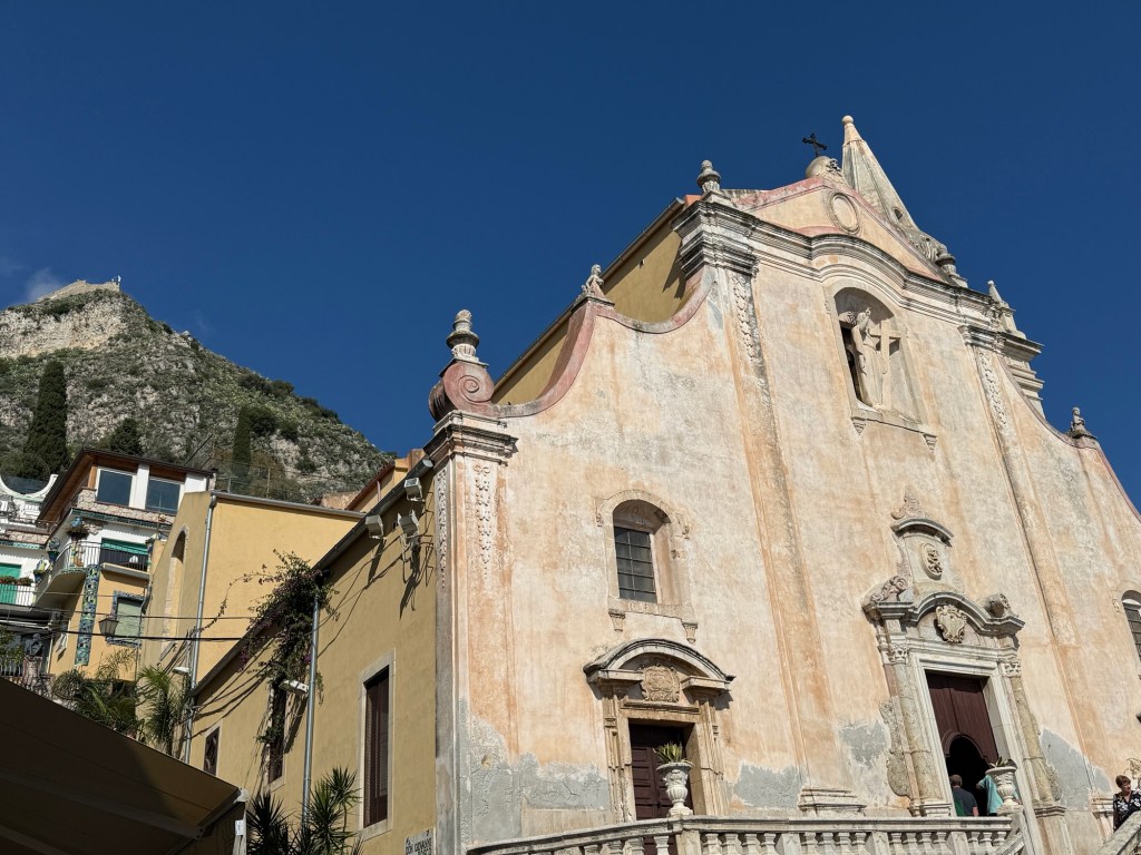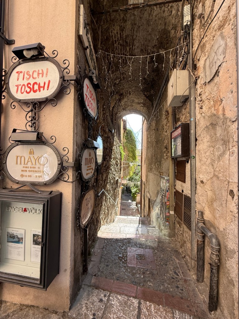 We took the bus to Castelmola and the whole experience was amazing with incredible scenery and windy roads. Once there we wandered in and out of shops and I went off on my own up into the castle itself and enjoyed all of its beautiful overview of the area. I had forgotten my earrings so I did buy a new pair which are the symbol of the wagon wheels in the region. There was a penis bar here which was unusual. We did not stop for a drink.